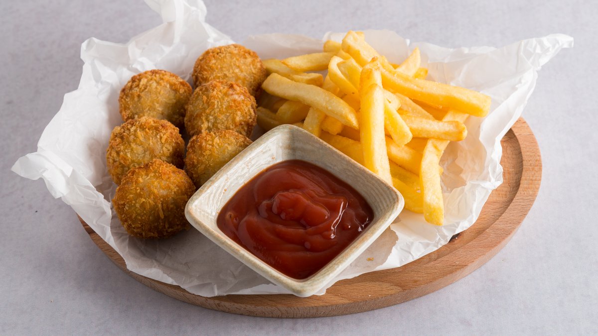 Pileće meso, panko prezle, jaja, pomfrit, kečap