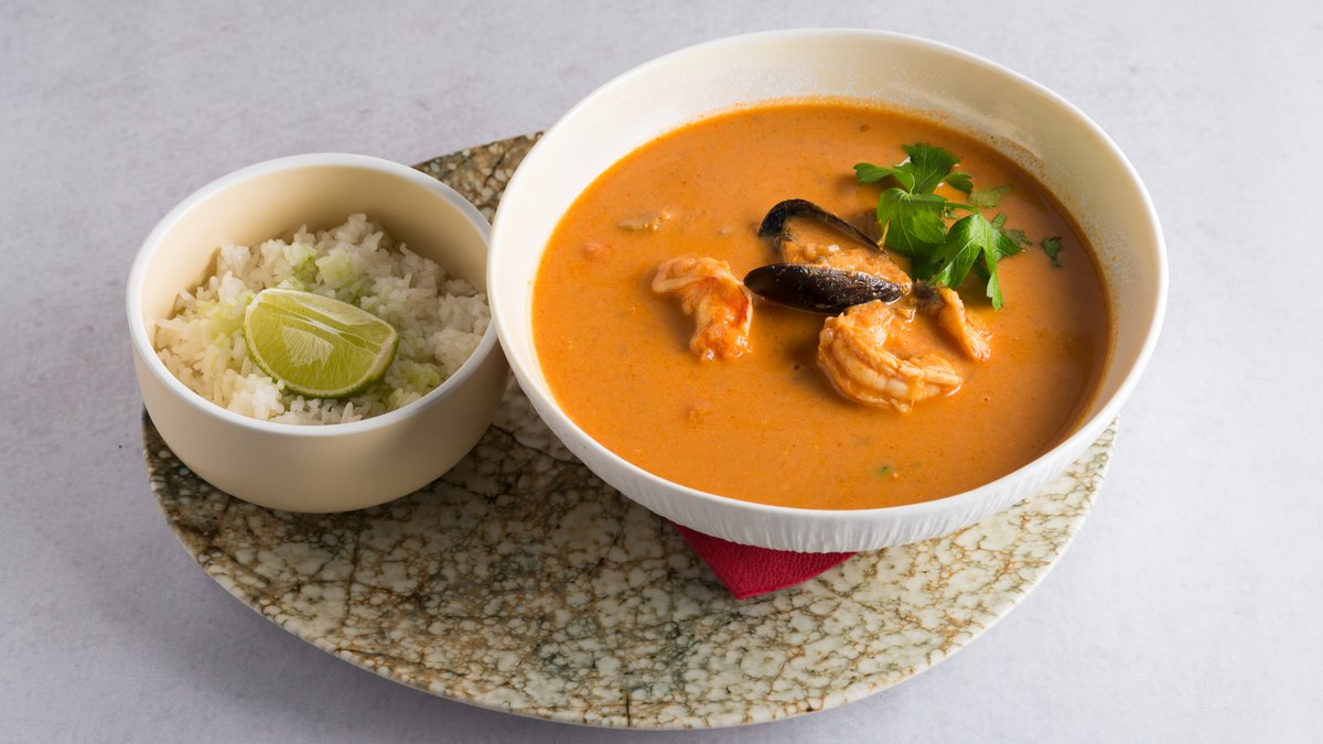 Argentinski škampi, čeri paradajz, bukovače, dagnje, pirinač