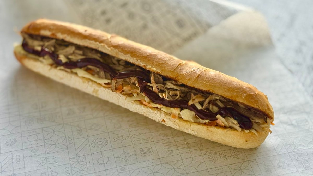 Baget, svinjetina dinstana u rerni, BBQ sos, salata coleslaw