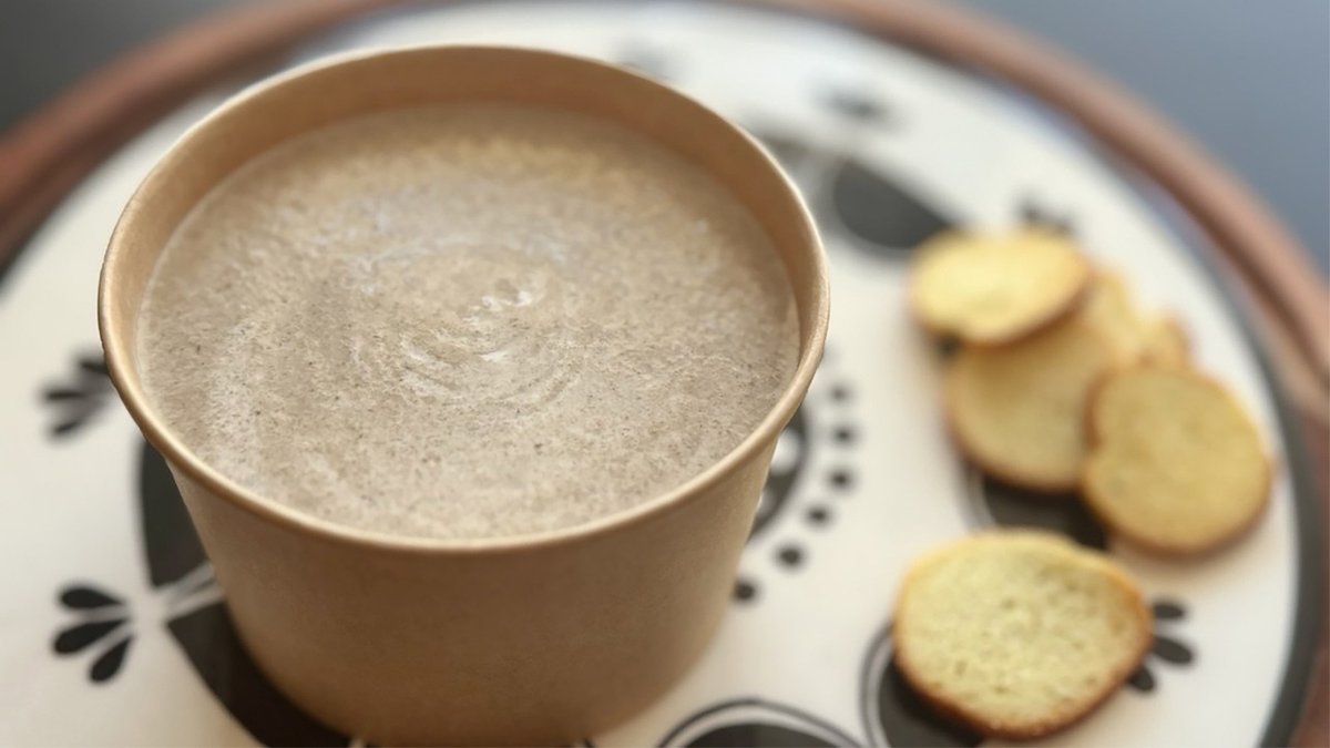 Nežna supa od mešavine šumskih pečuraka i šampinjona u bogatom povrtnom bujonu sa dodatkom pavlake, ulja od tartufa i krutona, 350 ml