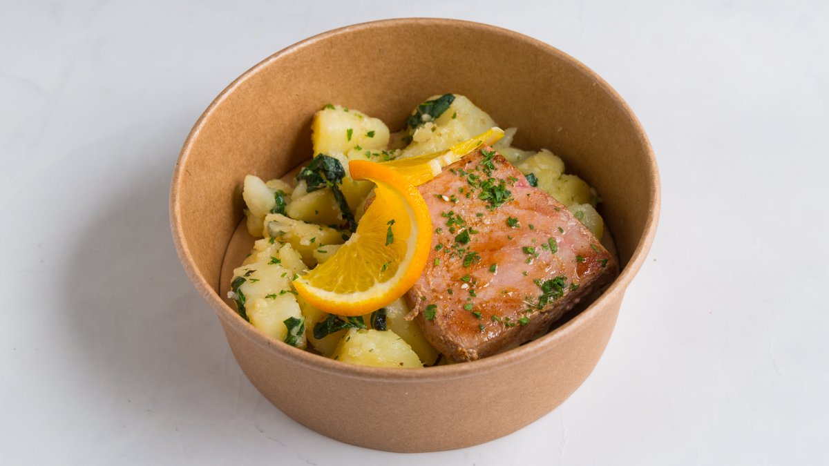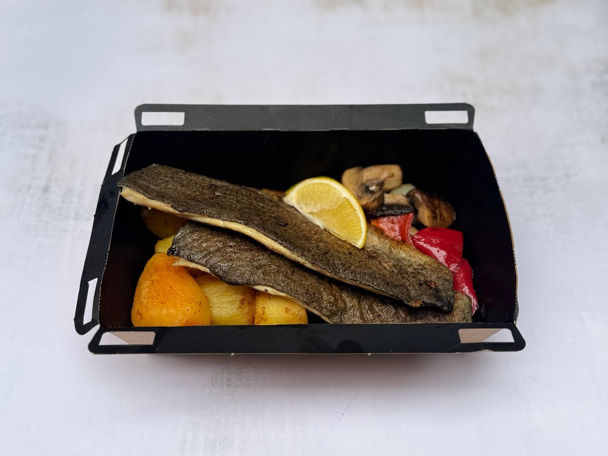 File dimljene pastrmke uz zapečeni krompir i grilovano povrće