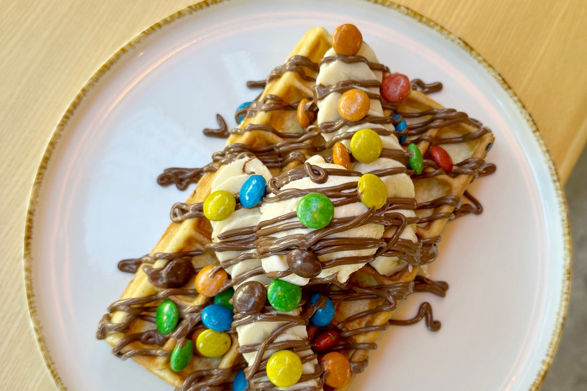 Vafla sa bananama, nutellom i M&Ms