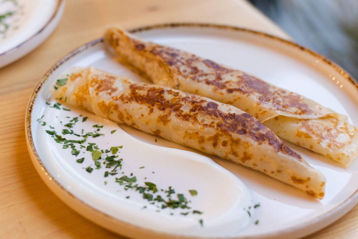 Palačinka sa sirom, jajetom, lososom i Shrek sosom, 270g (parmezan,luk vlašac, Zeleni sos sa mariniranim krastavcem, mirođija i senf)