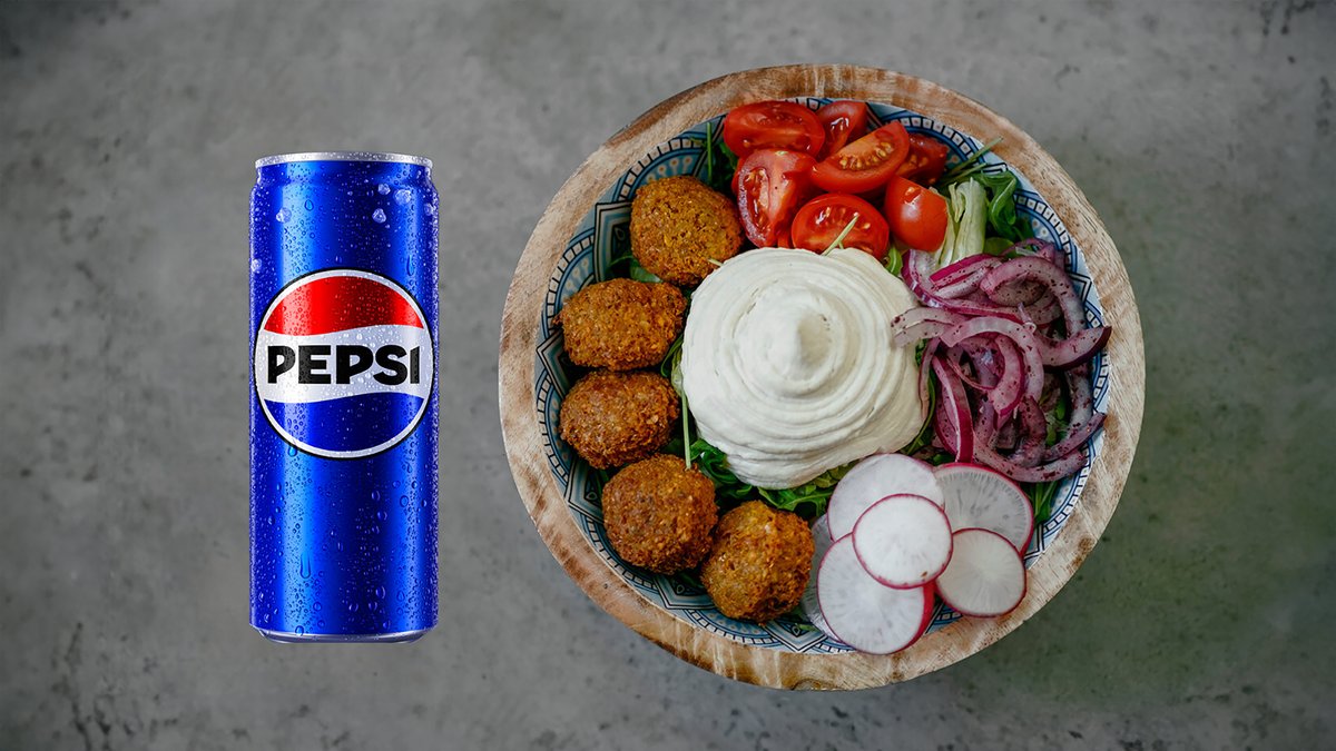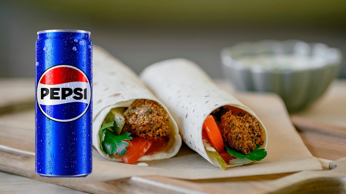 tradicionalni falafel na lavaš hlebu, sa paradajzom, peršunom, kiselim krastavcima i tahini sosom + piće Veganski