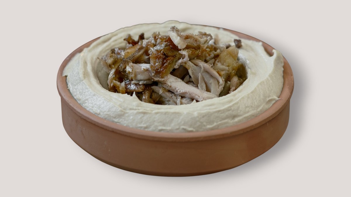 Naš čuveni libanski, kremasti humus napravljen od svežih leblebija i ukrašen peršunom. Odaberite željeno ulje, posluženo uz hrskave krekere. Veganski
