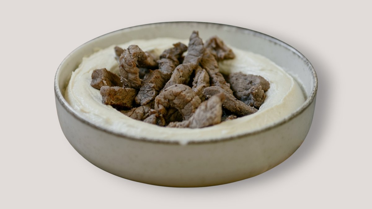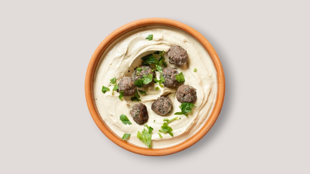 autentičan libanski humus sa 100% goveđom kaftom na vrhu