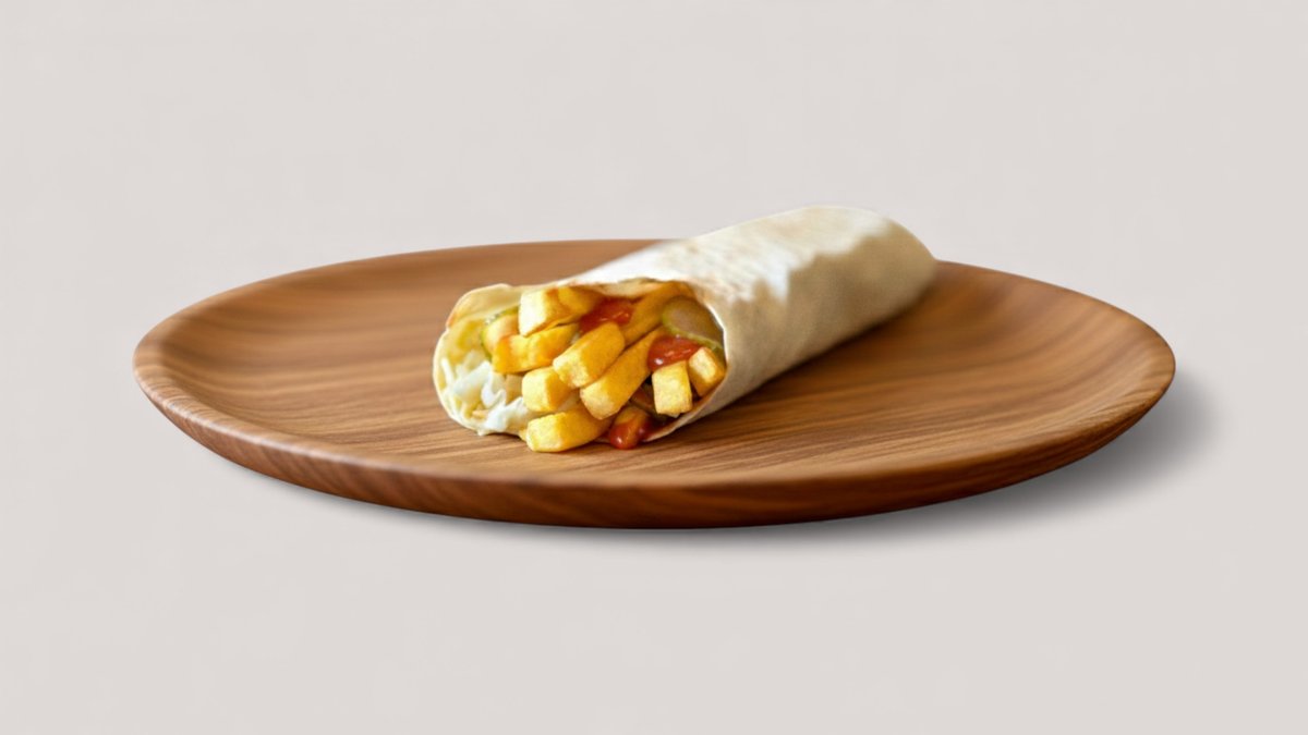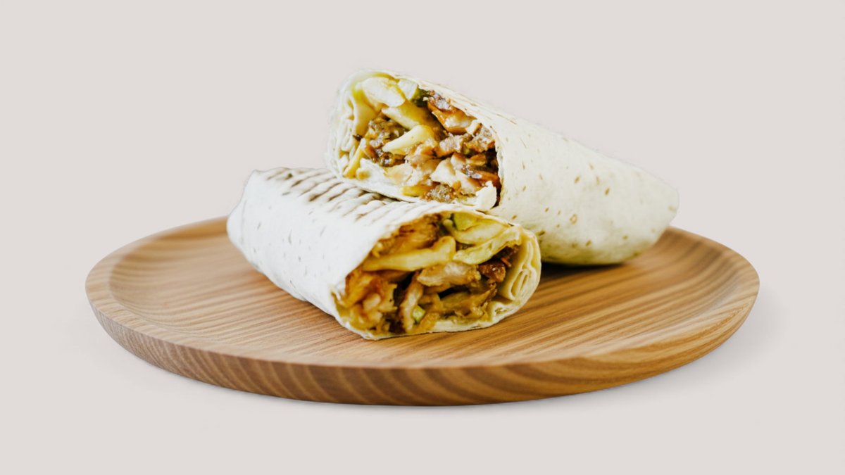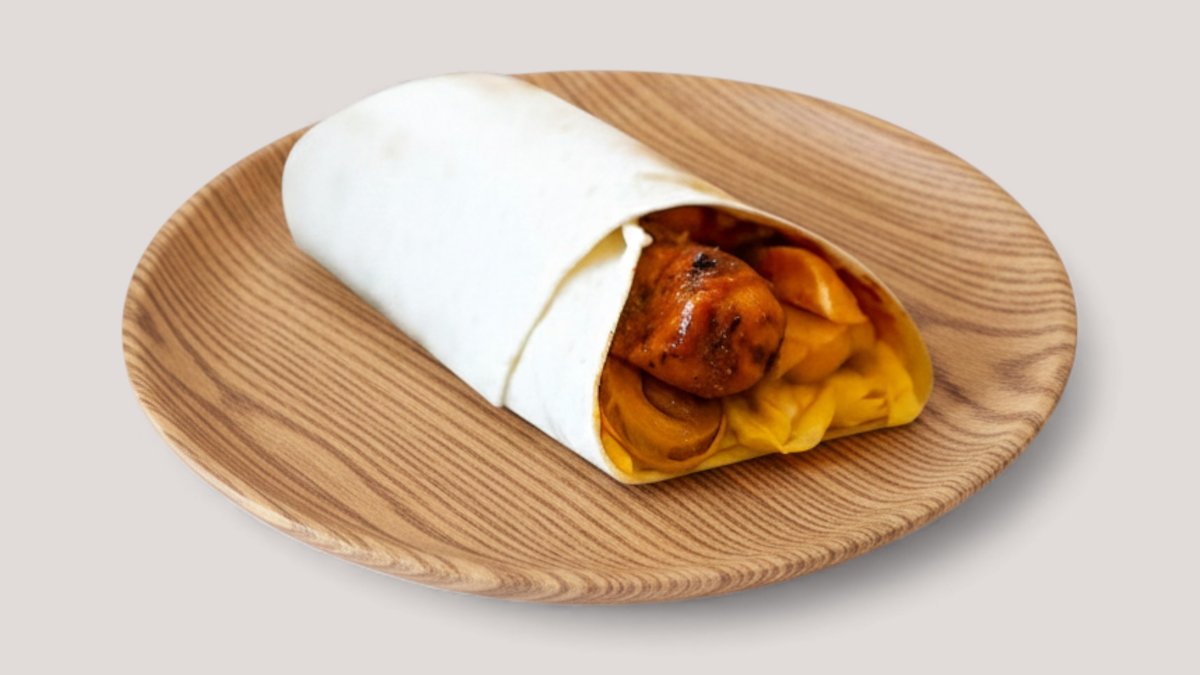 mekane tavuk pileće kockice, hrskava coleslaw salata, kiseli krastavac, pomfrit, kečap, sa sosom po izboru na bazi belog luka ili majoneza, sve umotano i tostirano u lavaš hlebu