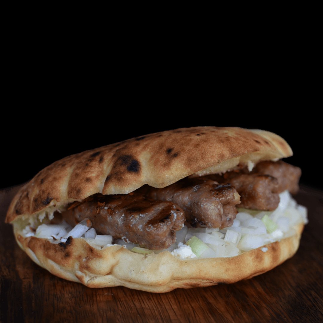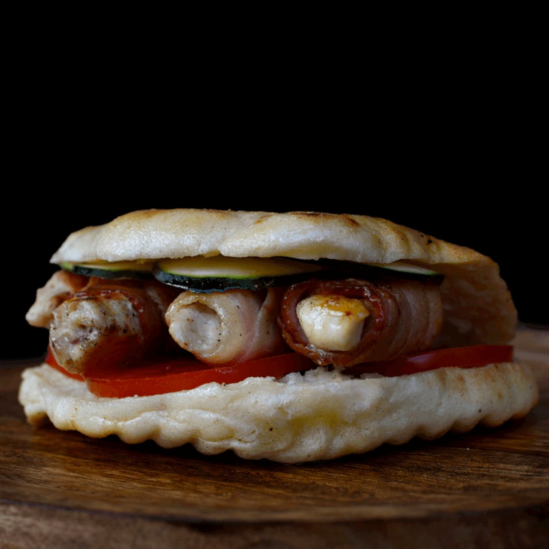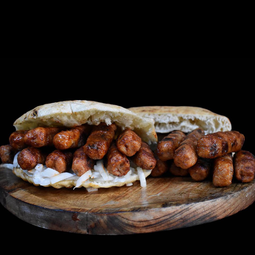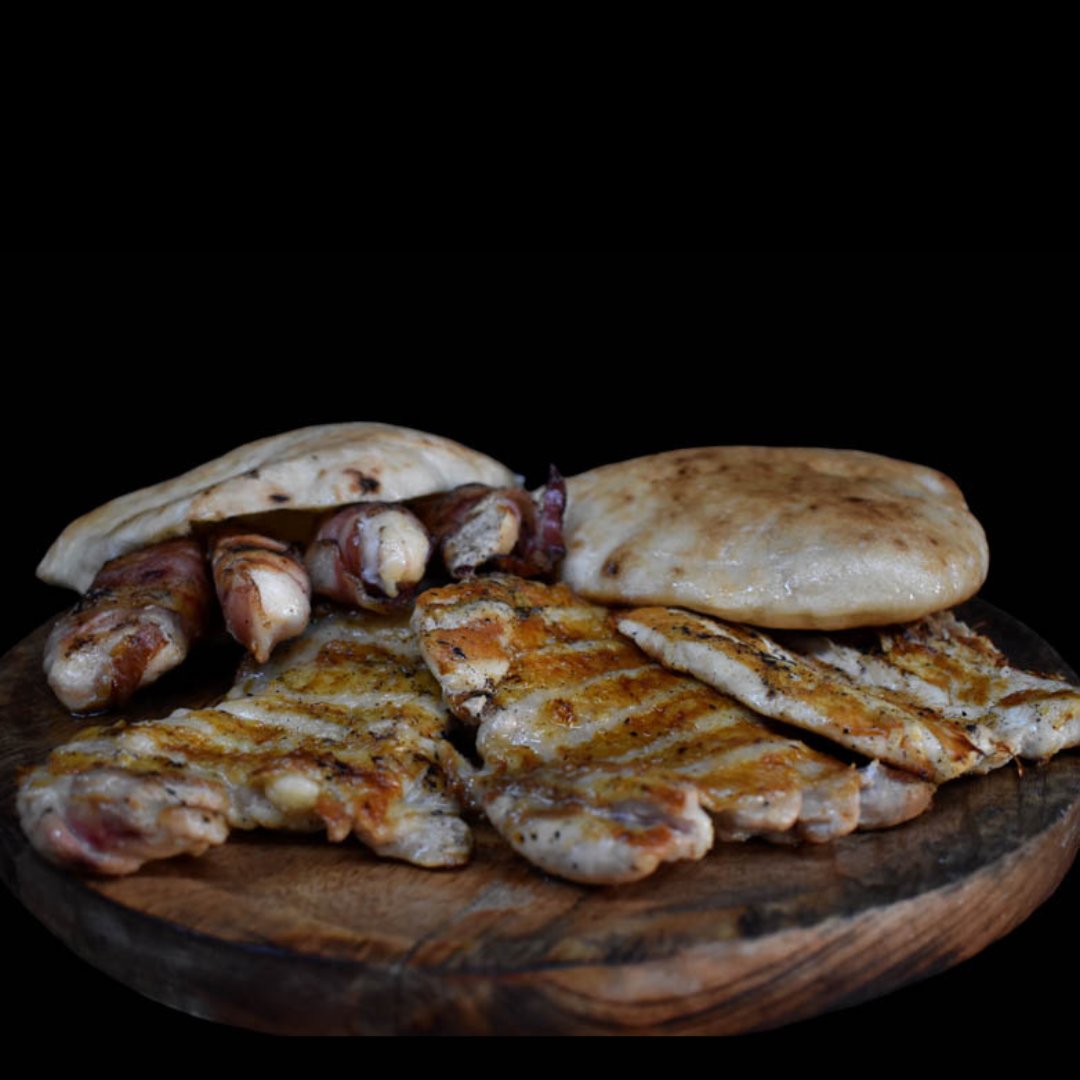 Miks fete, kačkavalja i pečenice pedantno urolan u pileće belo meso koje je dodatno tretirano našom ljutom mlevenom paprikom na grilu, mekan i topao somun, prilozi i namazı.