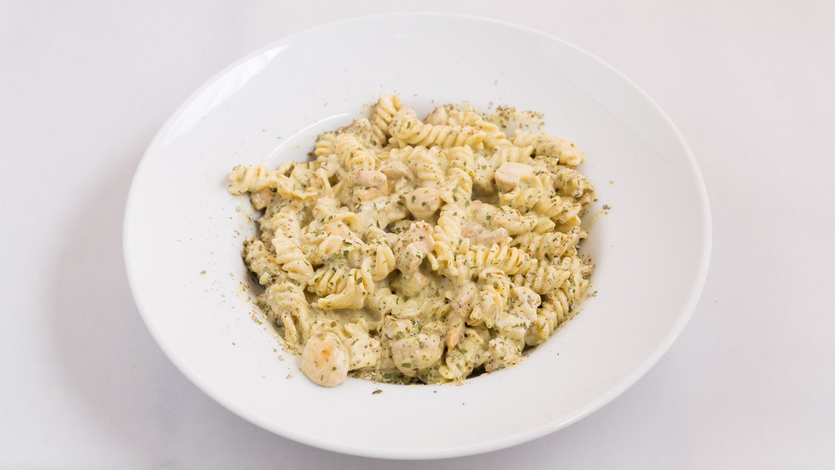 Piletina file, pesto, neutralna pavlaka, šampinjoni, fusili testenina