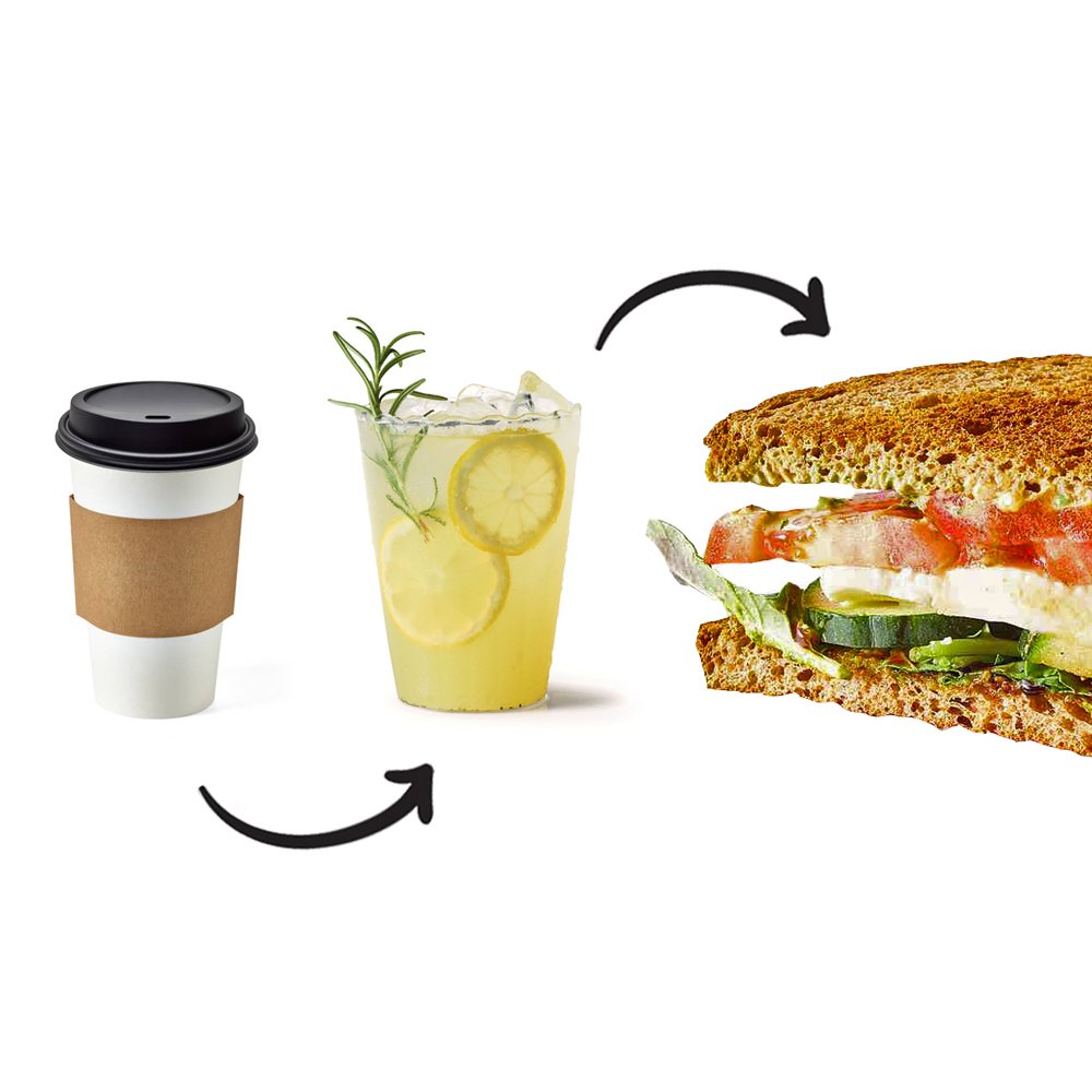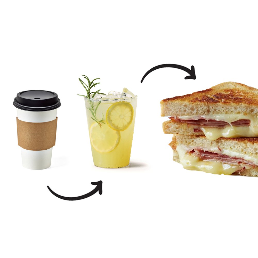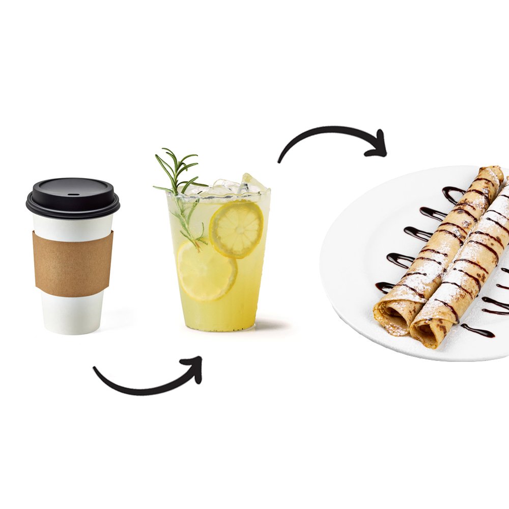 Osnova svakog mixa su espreso kafa sa ili bez mleka i limunada, u kombinaciji sa tost sendvičima ili palačinkama. Izaberite željeni mix i uživajte u obroku.