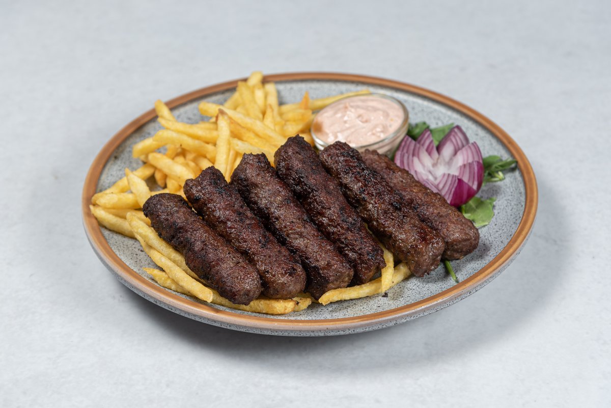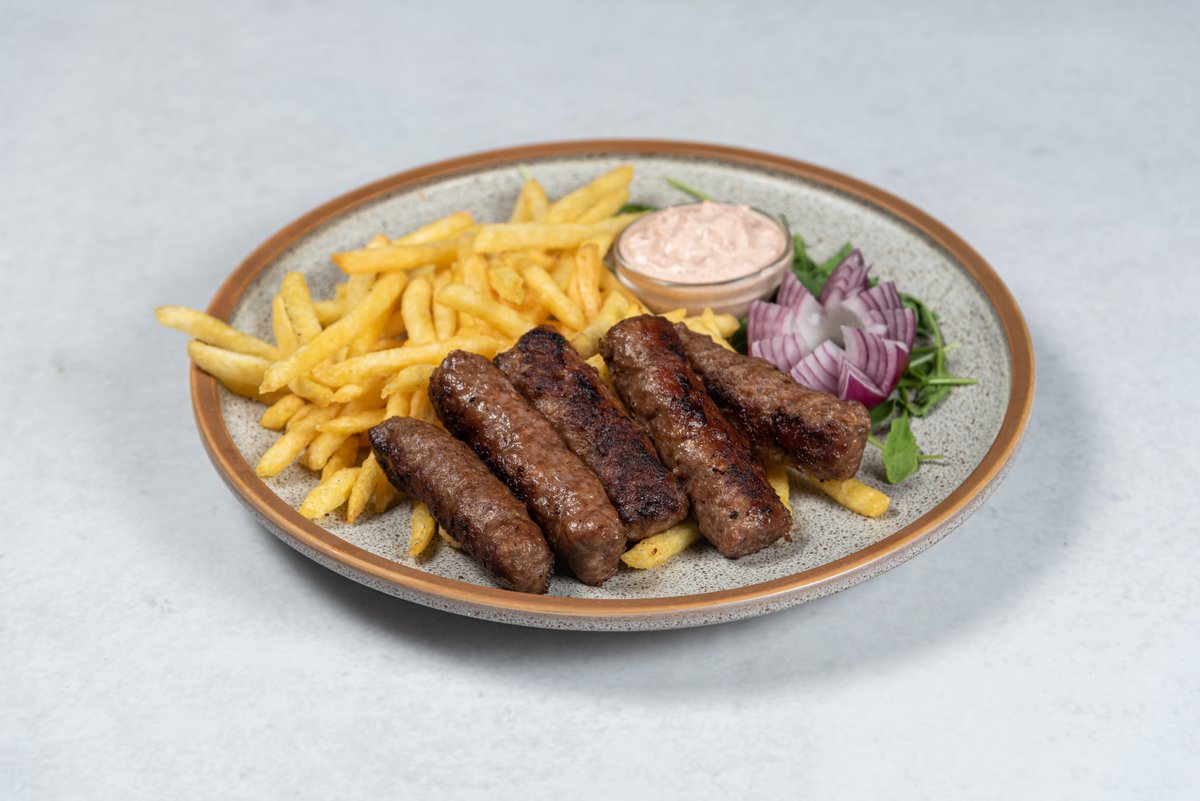 300gr jagnjecih cevapa, 200gr pomfrita, somun 1kom, luk, urnebes