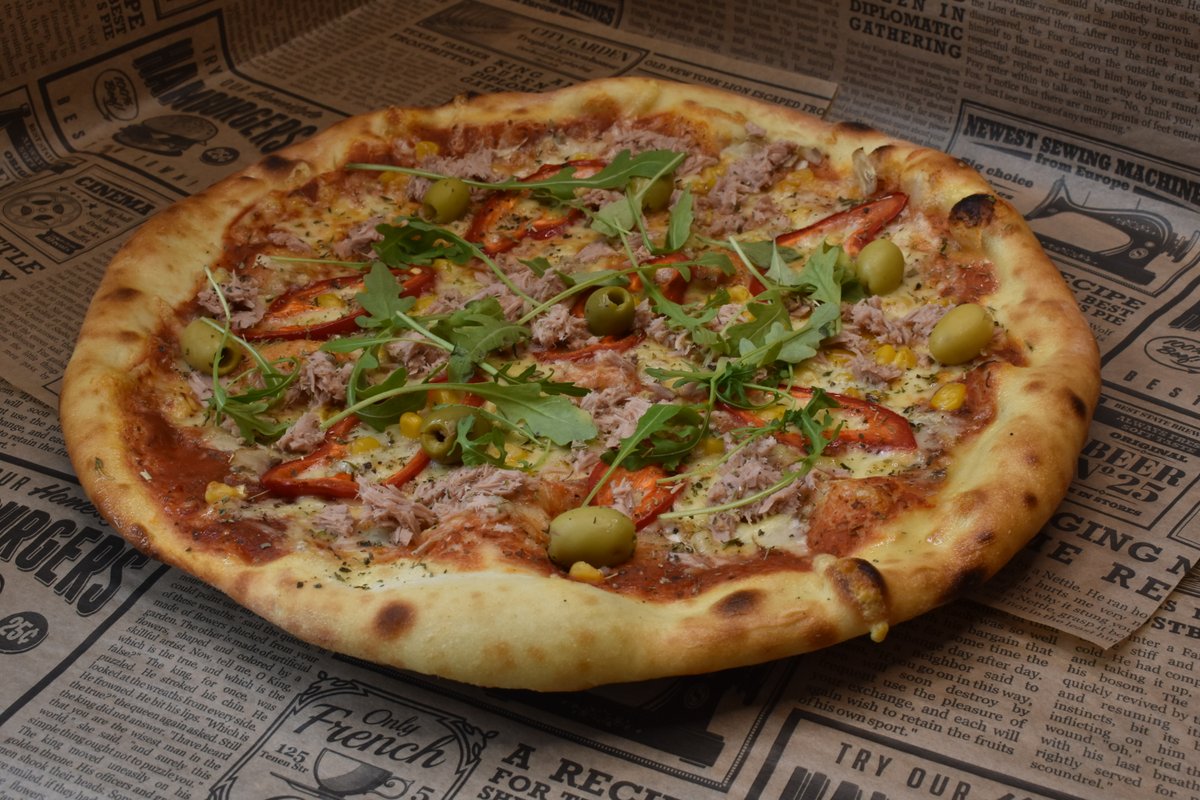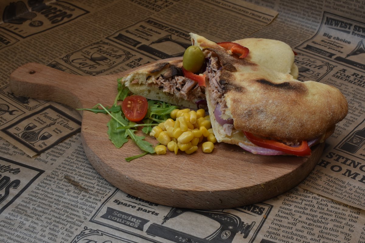 Domaća lepinja 180g, tuna, posni kačkavalj, pečurke, paprika