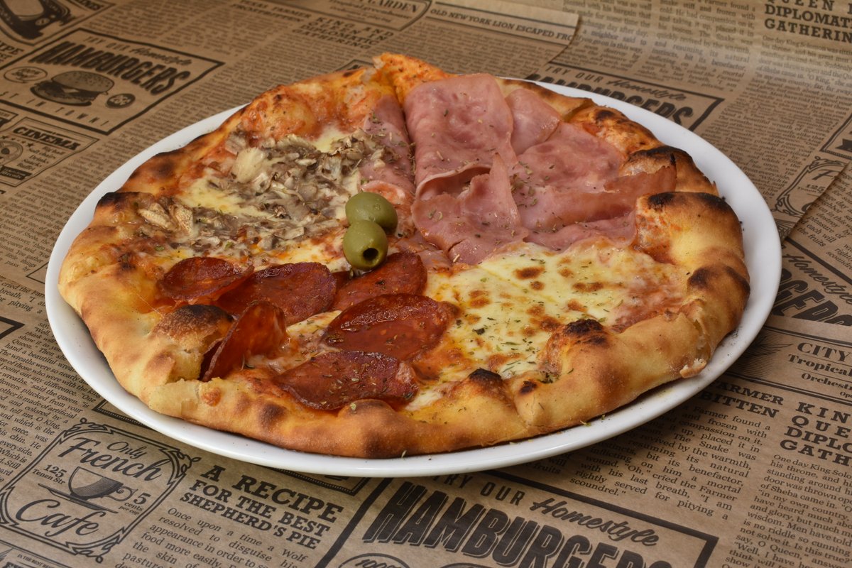 Pelat, posni kačkavalj, pečurke, tuna, paprika, šećerac, rukola