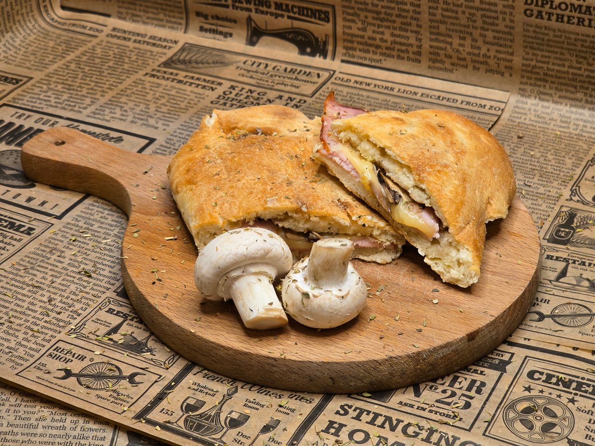 Domaća lepinja 180g, šunka, kačkavalj, pečurke