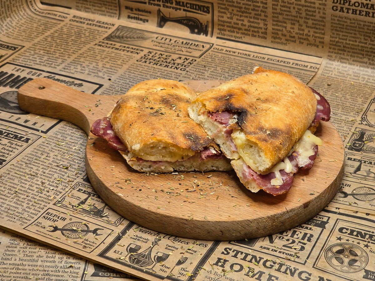 Domaća lepinja 180g, suvi vrat, kačkavalj, pečurke