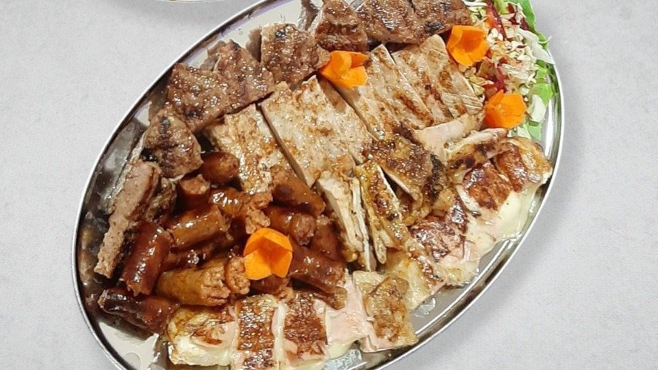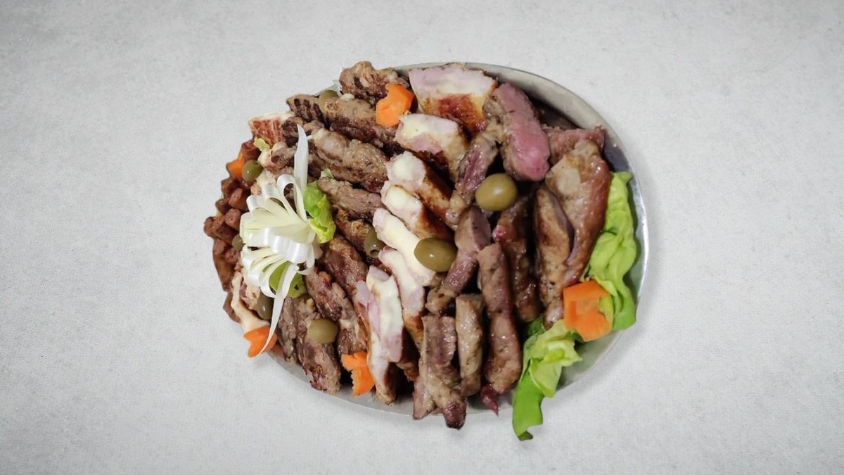 Gurmanska pljeskavica 250g, lovačka vešalica300g, sušenica200g, ćevapi 10 komada-400g, kobasice200g, svinjski vrat200g, pomfrit200g, bećarac 4komada + 200g salata urnebes ili vitaminska