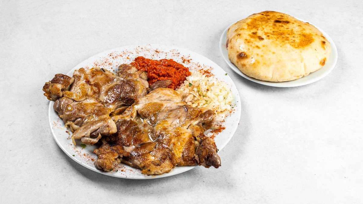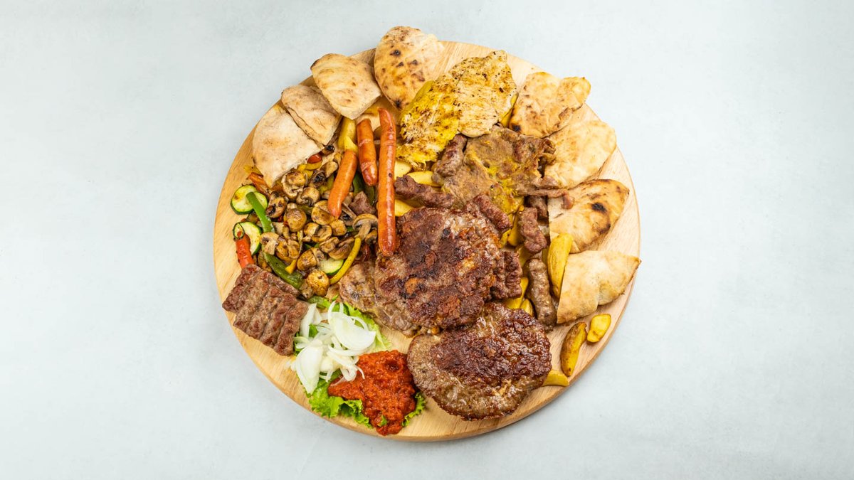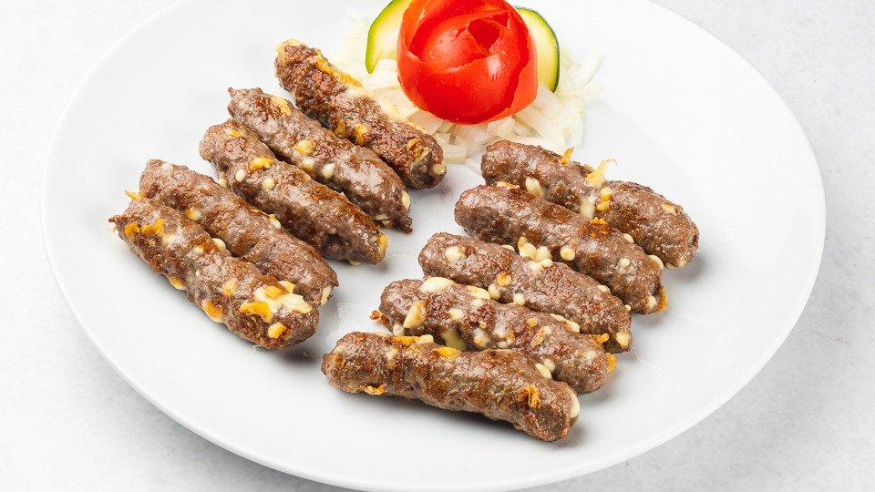 2 pljeskavice, 5 ćevapa, 2 kobasice, 1 pilećI batak. 1 pileće belo,1 bela vešalica, 1 uštipak