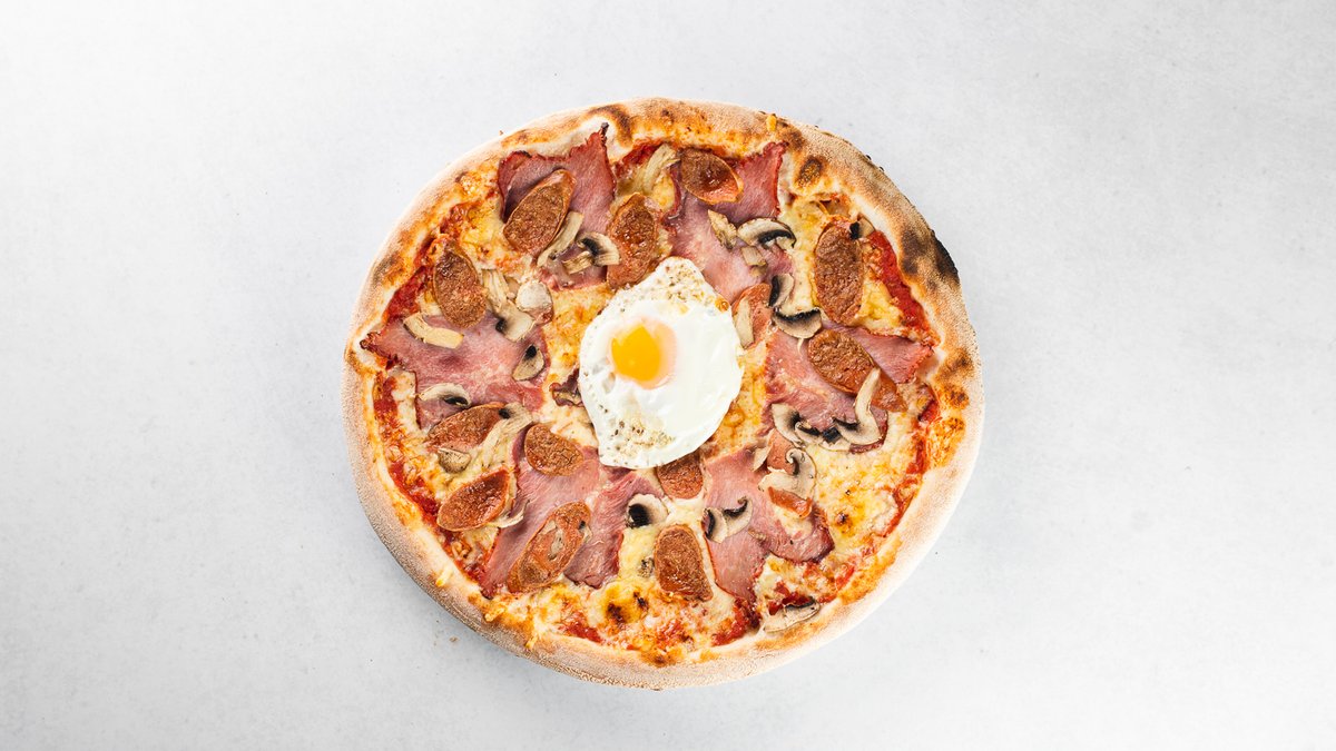 Kečap, kačkavalj, šunka, slanina, jaje, origano, masline