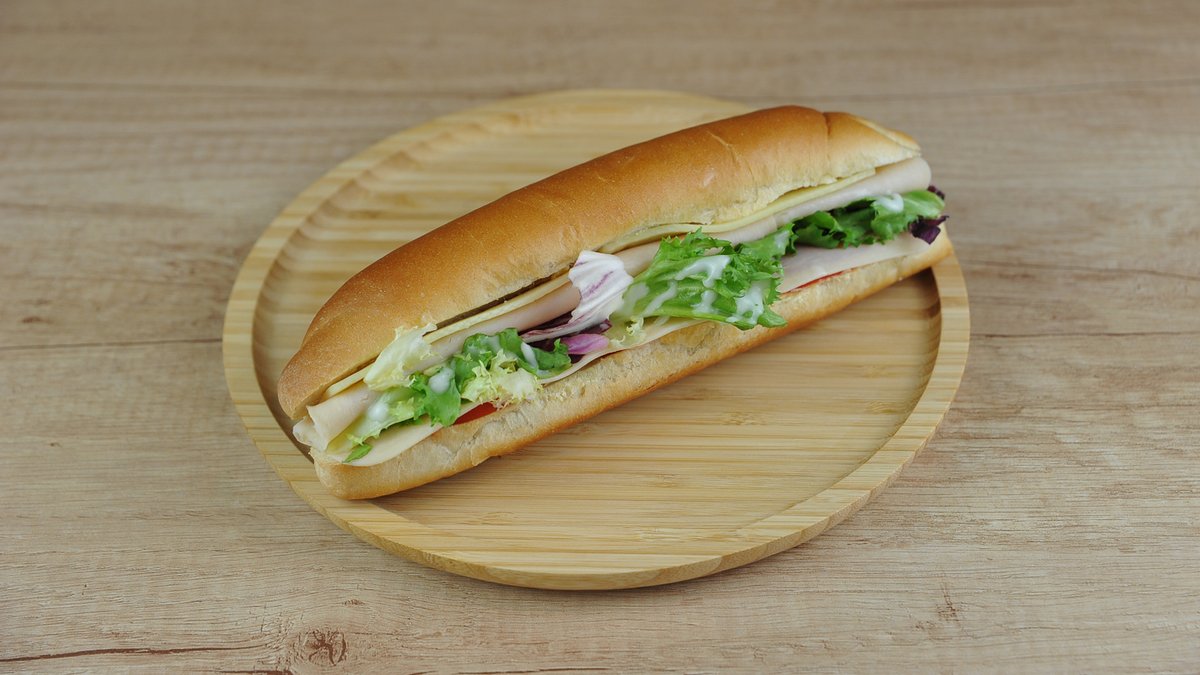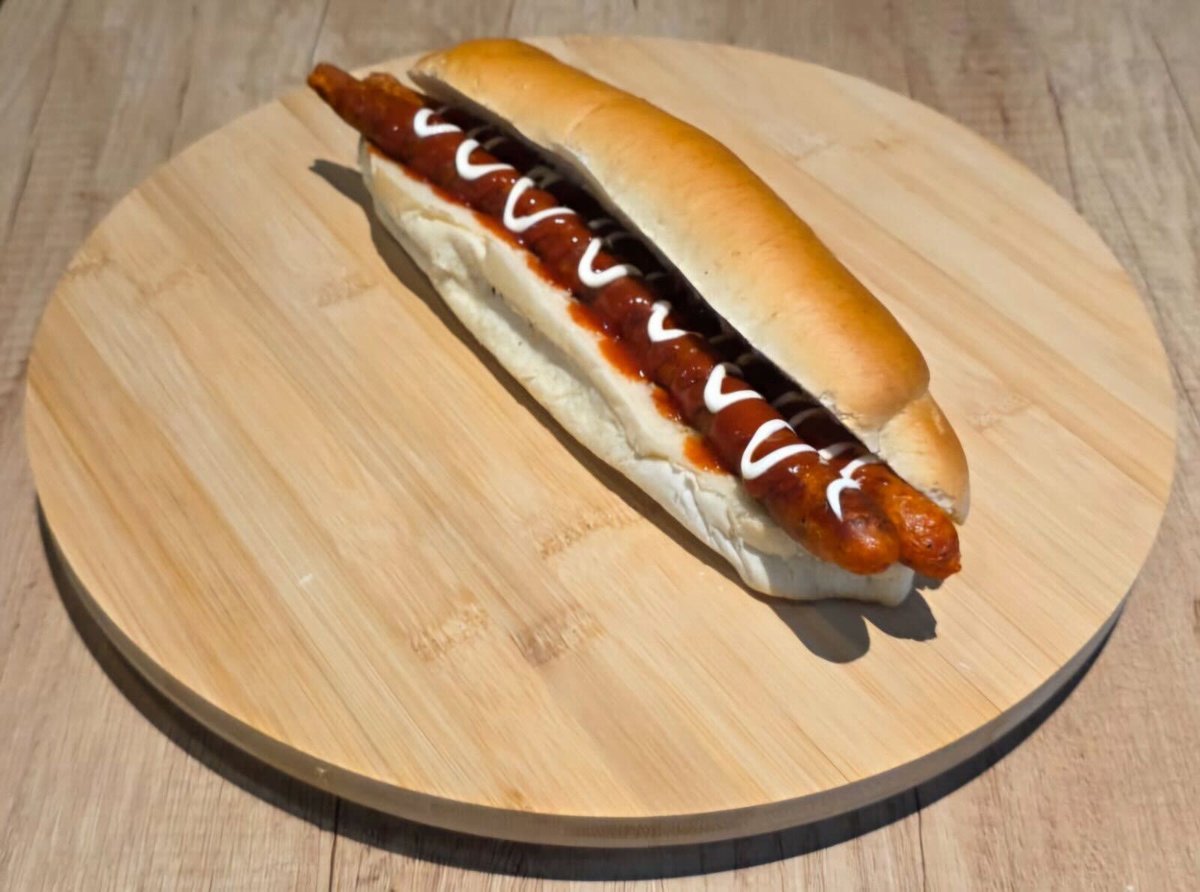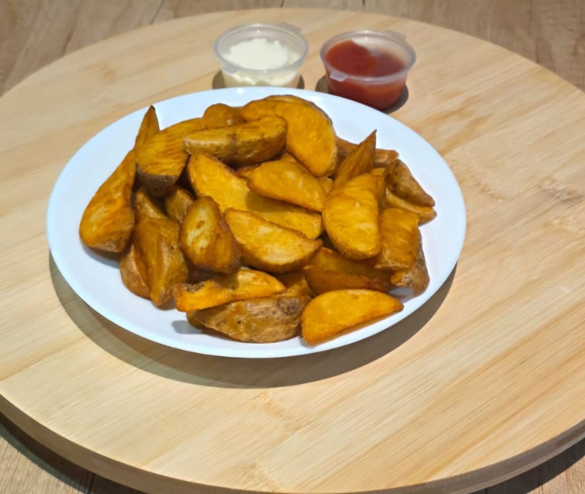 70gr začinjeno belo meso, 70gr pomfrit Prilozi: pavlaka, majonez, kečap, senf, paradajz, krastavac, zelena salata, luk, kiseli krastavčići