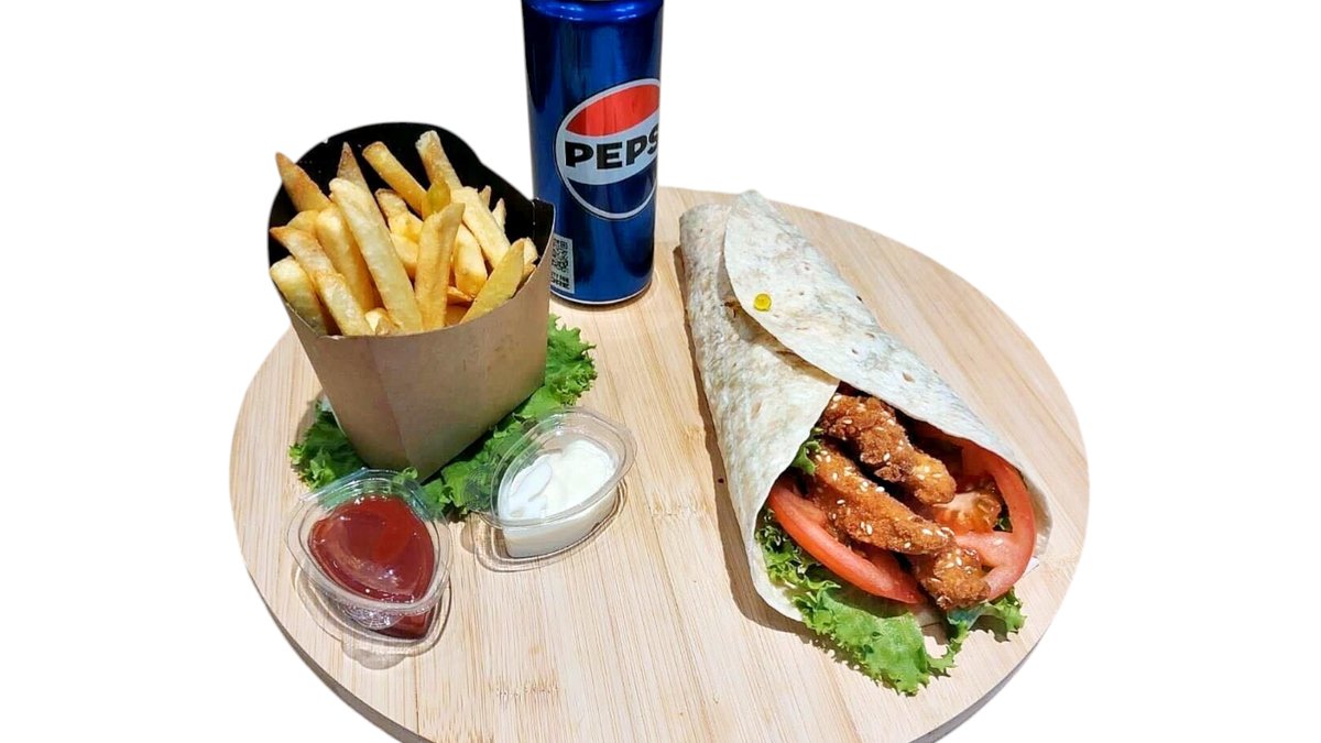 Štapići sa susamom u tortilji 150gr., pomfrit 100g, Pepsi 0.33L