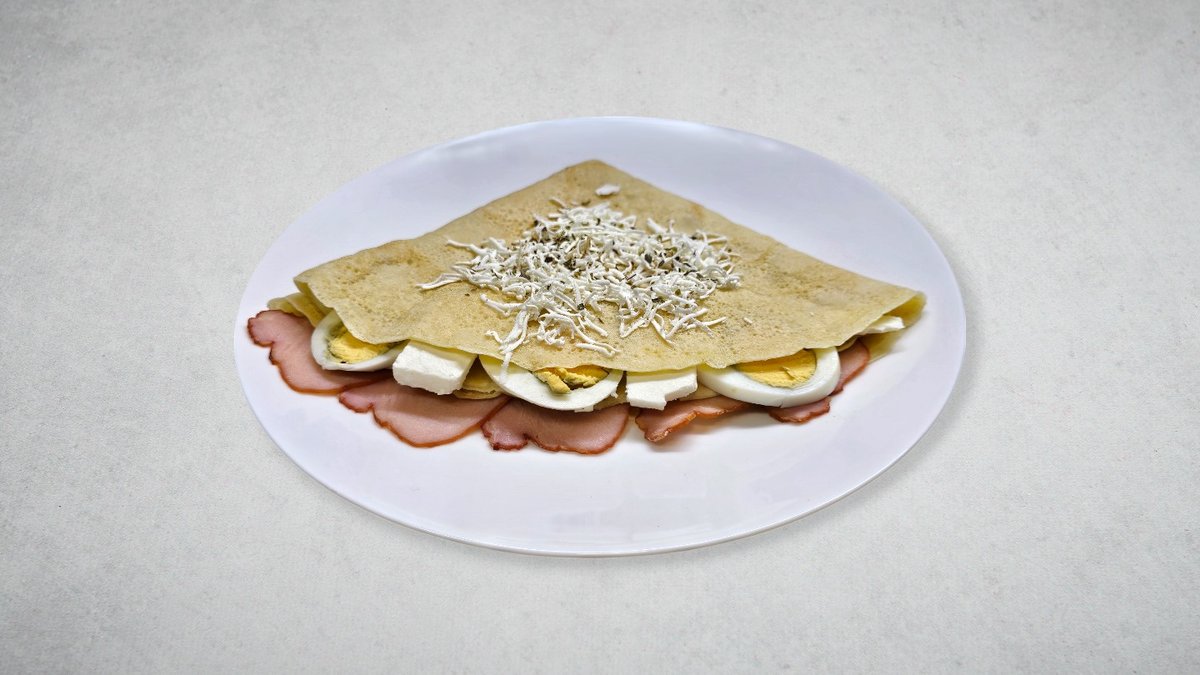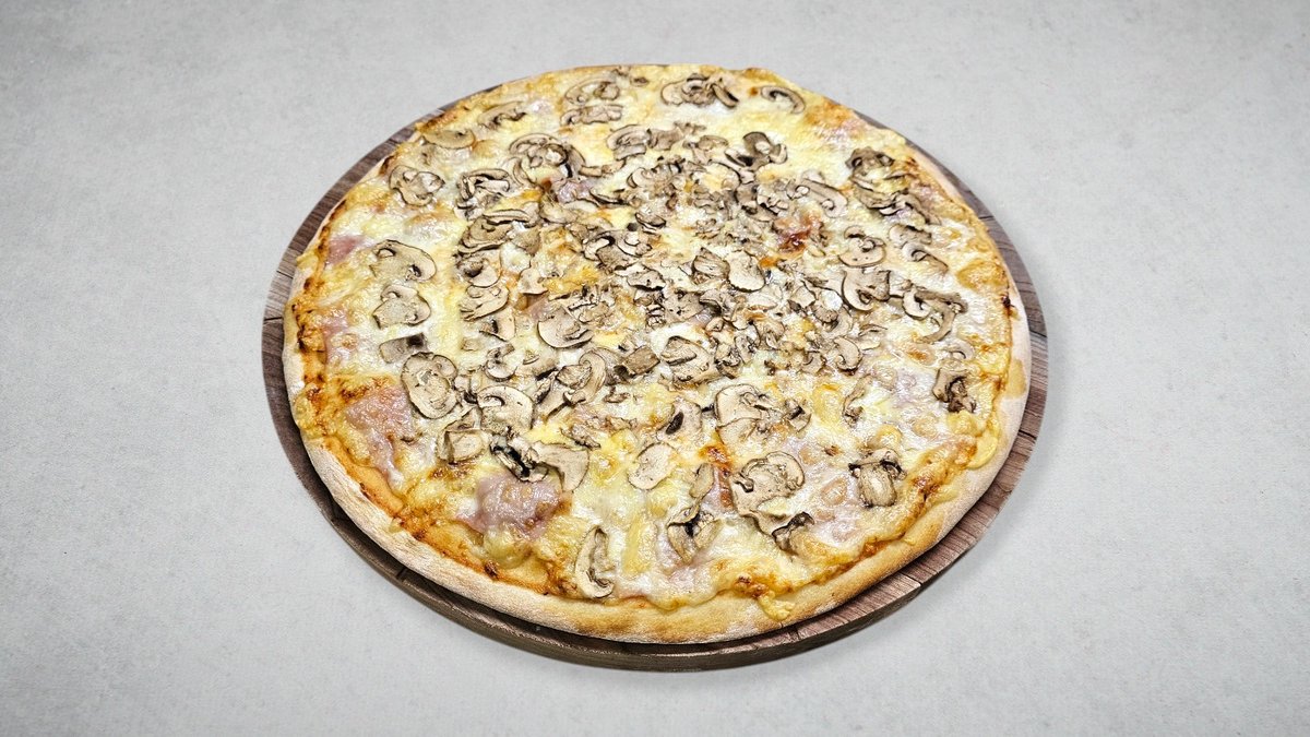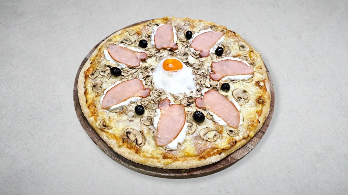 Pelat, šunka, pečenica, kačkavalj, pečurke, jaje, pavlaka, masline, origano