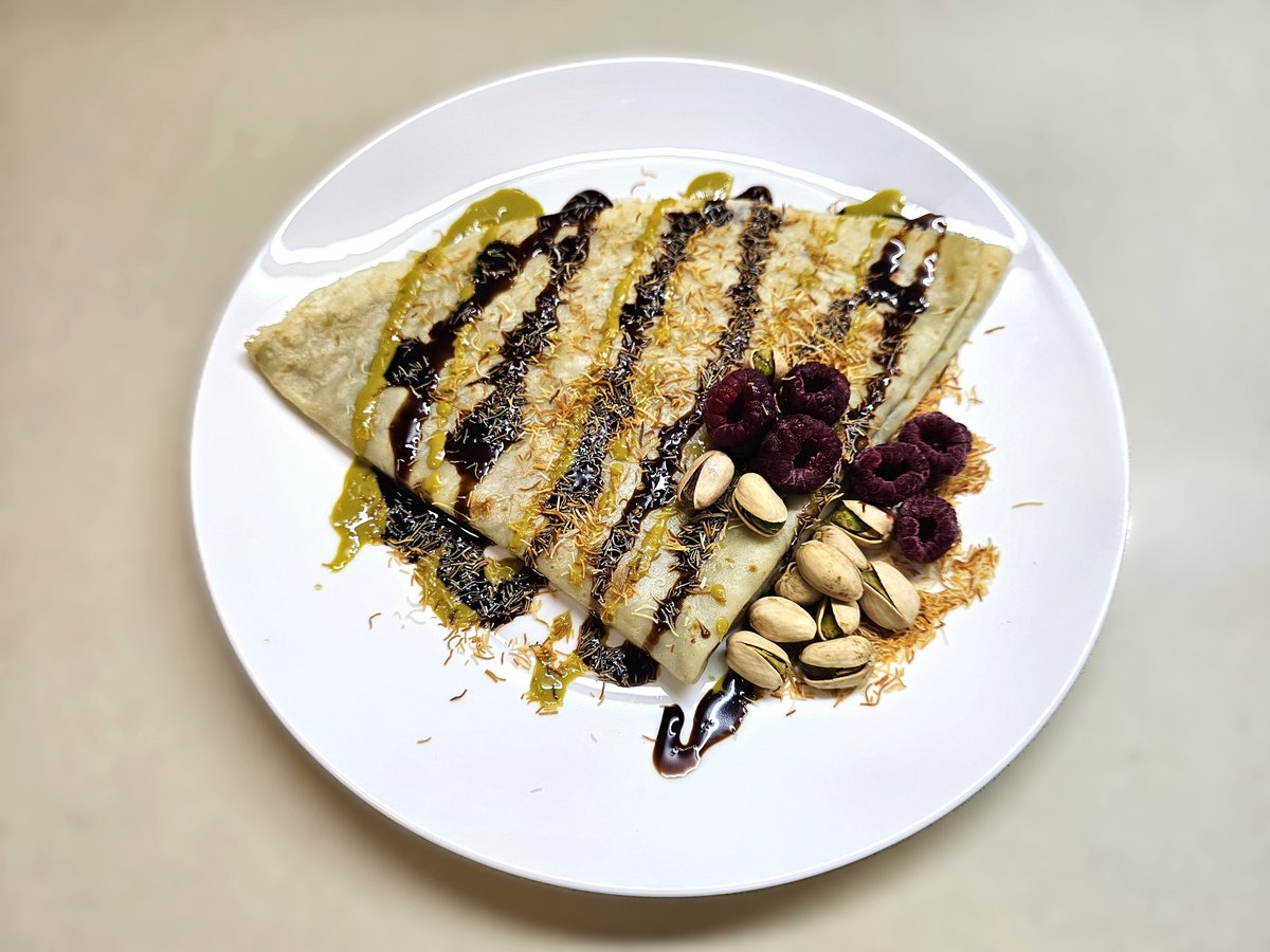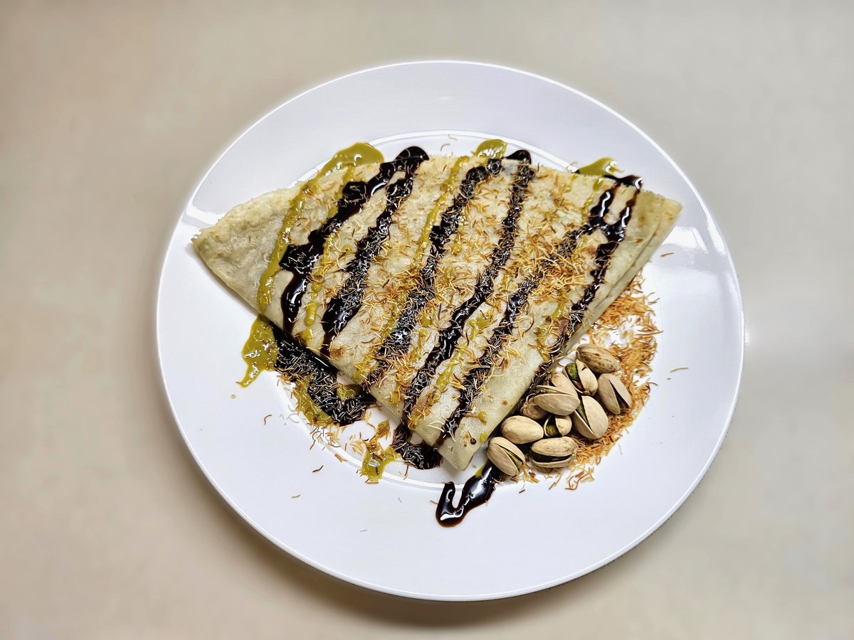 Pelat, šunka, pršuta, kačkavalj, jaje, pečurke, rukola, masline, paprika, origano