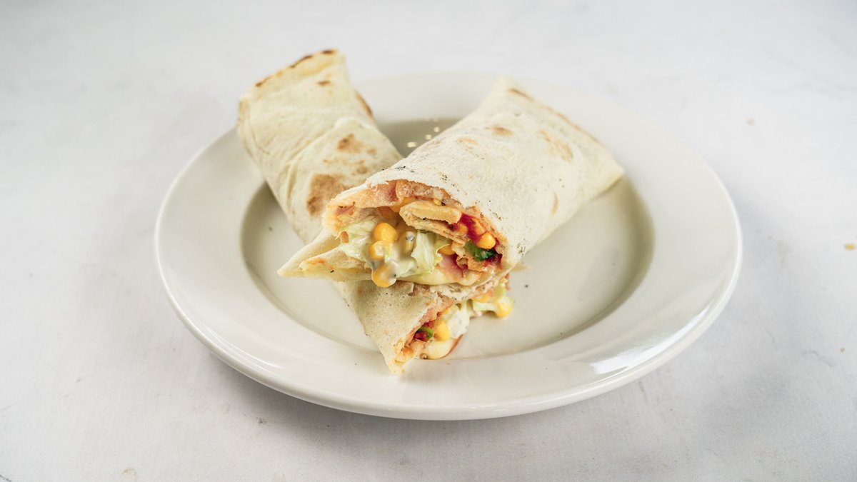 tzatziki sos, zelena salata, krastavac, pomfrit, kačkavalj, kukuruz