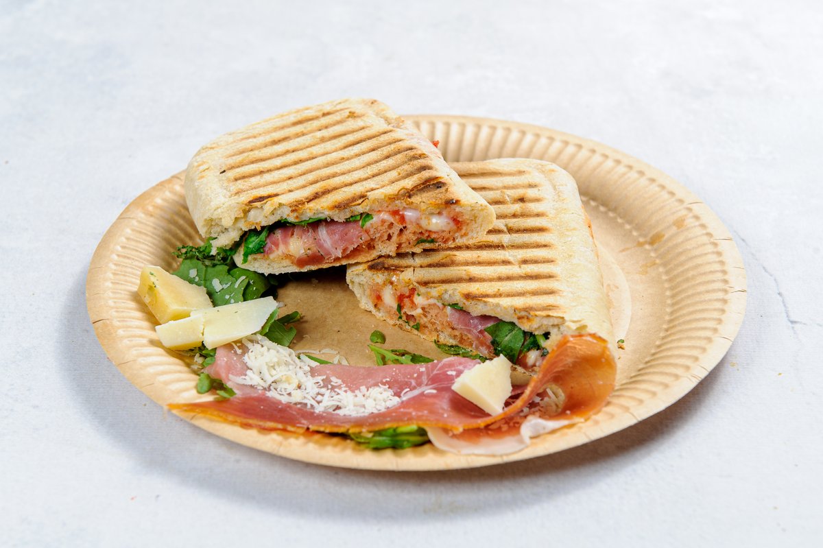 dimljena pršuta, kačkavalj, kajmak, paradajz, zelena salata, krastavac