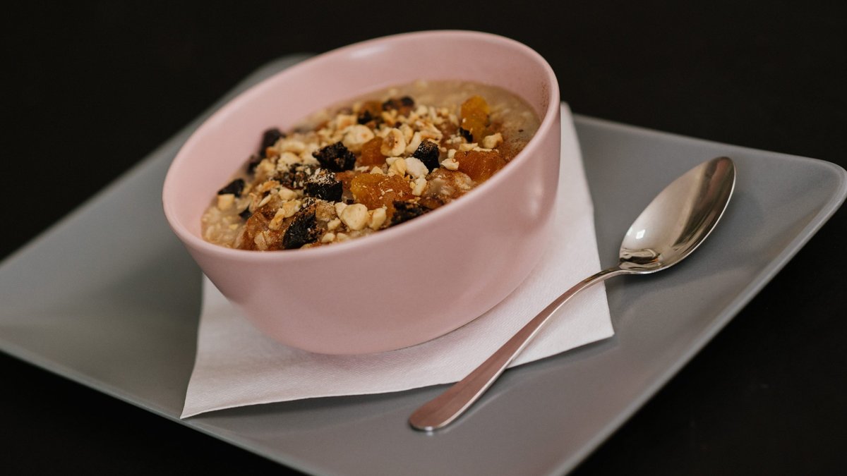 Ovsene pahuljice, med, suve šljive, suve kajsije, suvo grožđe, badem, lešnik, cimet
