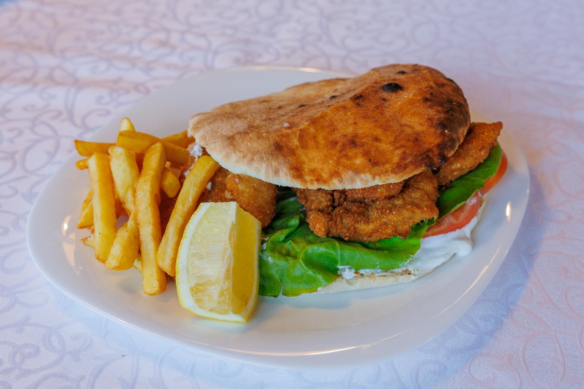 Pavlaka, pileće belo, paradajz, sir, pomfrit