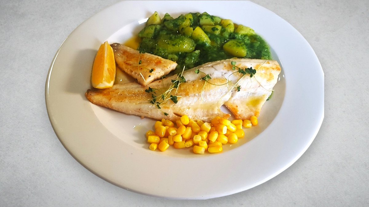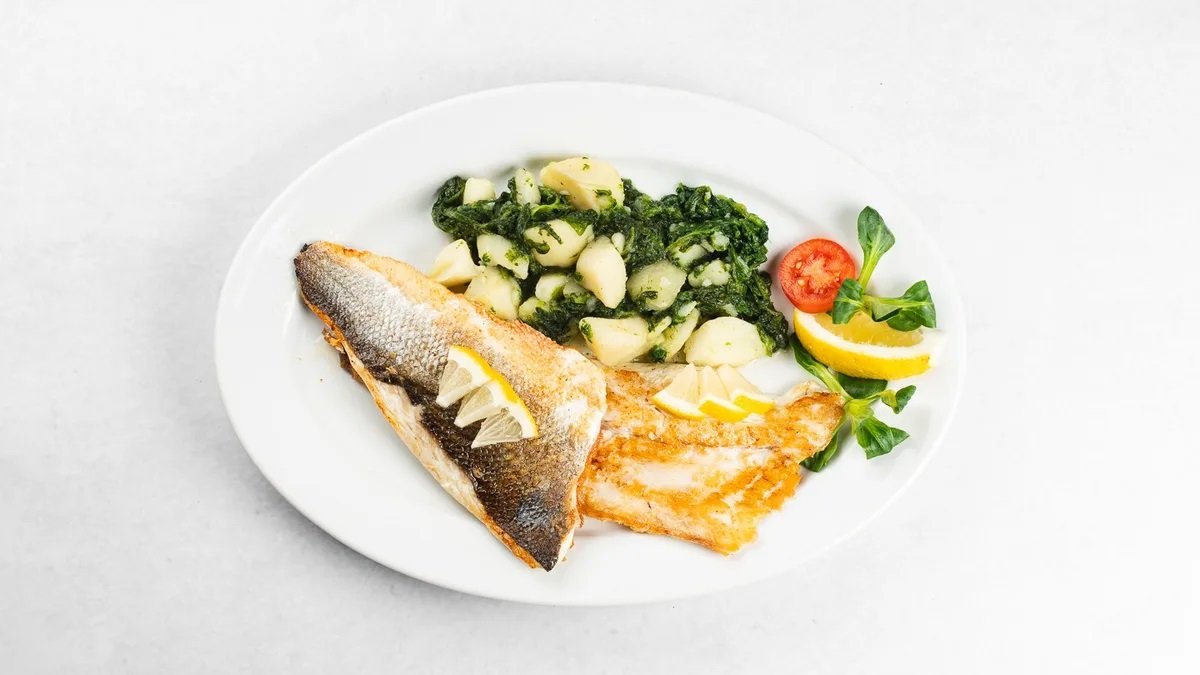 Fileti brancina pečeni na roštilju sa prilogom bareni krompir sa spanaćem i marinadom