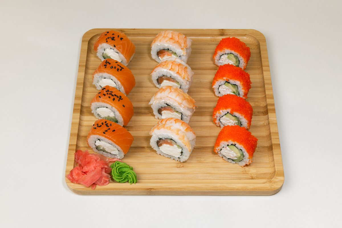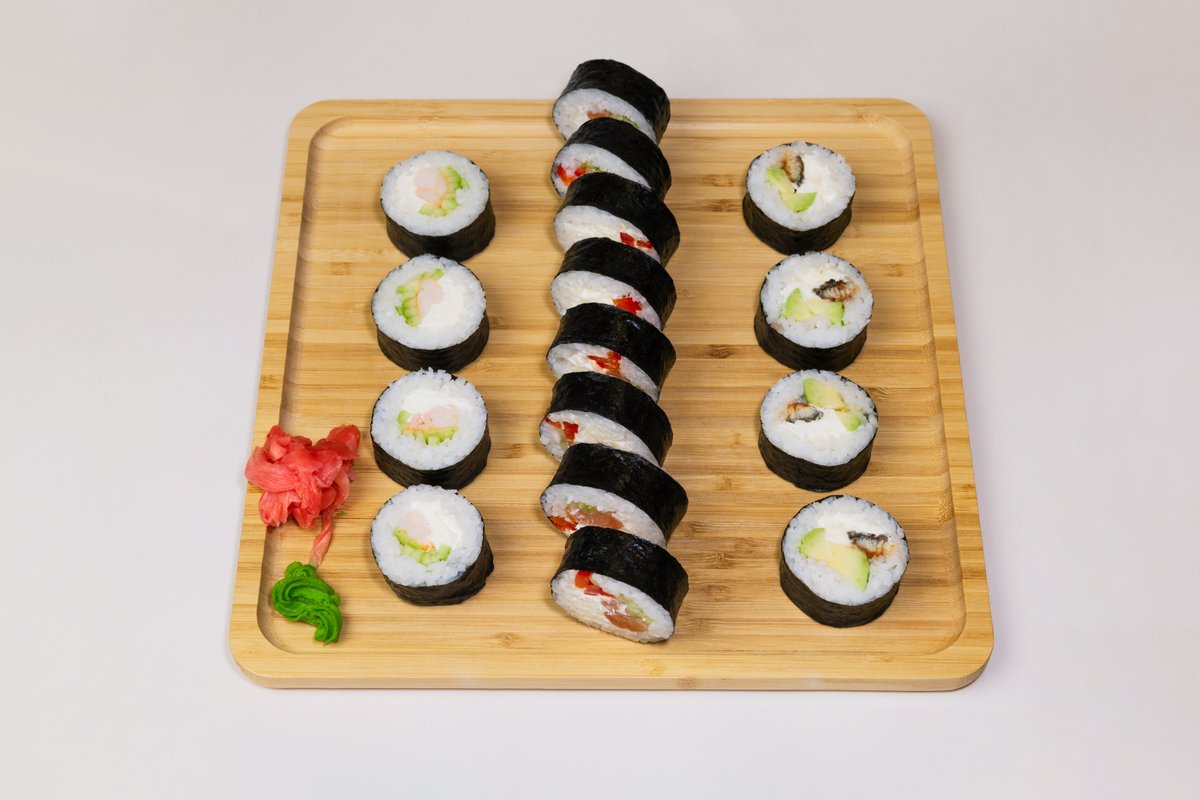270g prirnac, nori, sir, krastavac, avokado, jegulja, sos, prženi luk, 8 komada