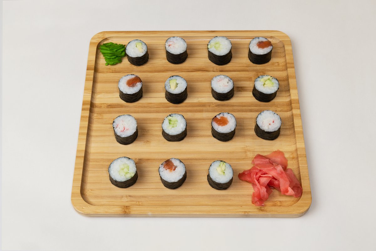 200g Pirinač, nori, losos, avokado, krastavac, surimi, 16 komada