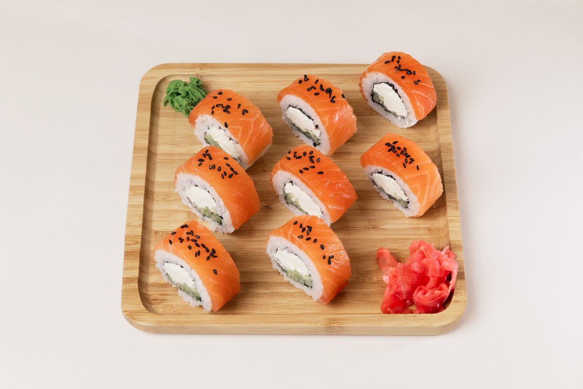 270g Pirinač, nori, sir, dimljeni losos, krastavac, avokado, ljuspice tunjevine, 8 komada