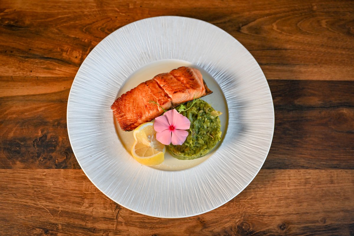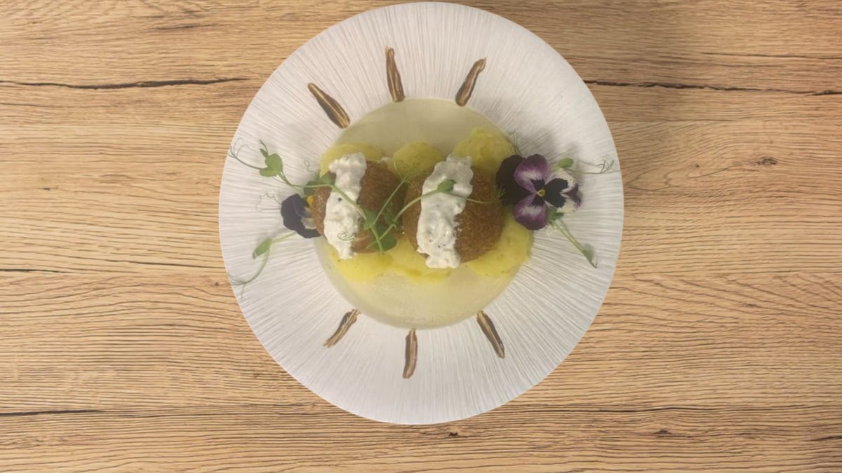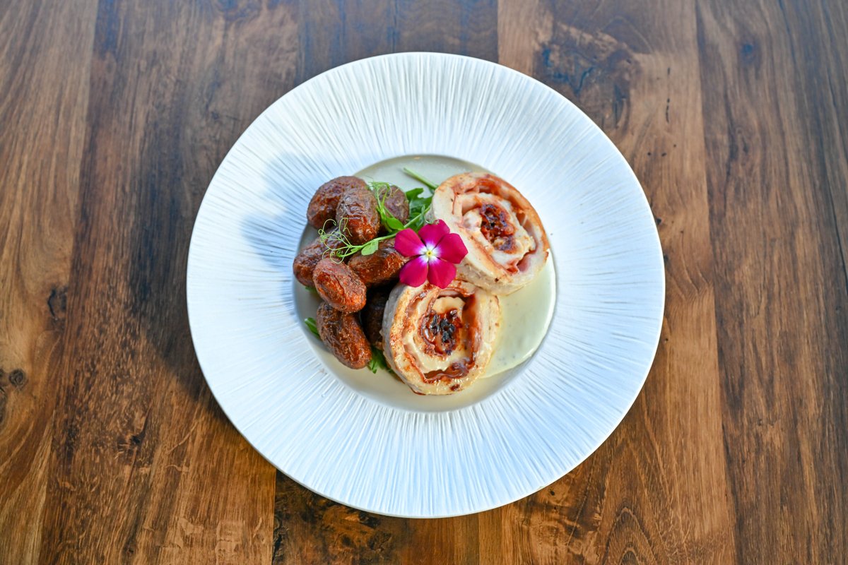 biftek, njeguški pršut, žalfija, pire, kajmak, špargla