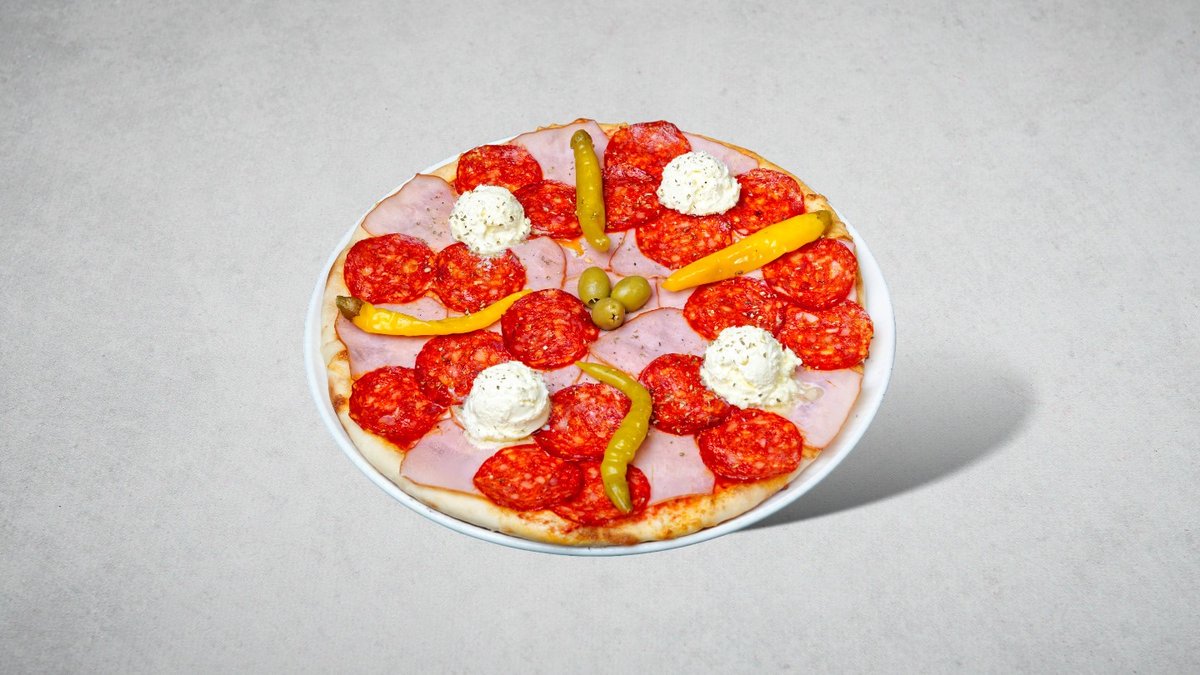 kečap, sir, suvi vrat, šunka, pavlaka, ajvar, masline, origano, pečurke