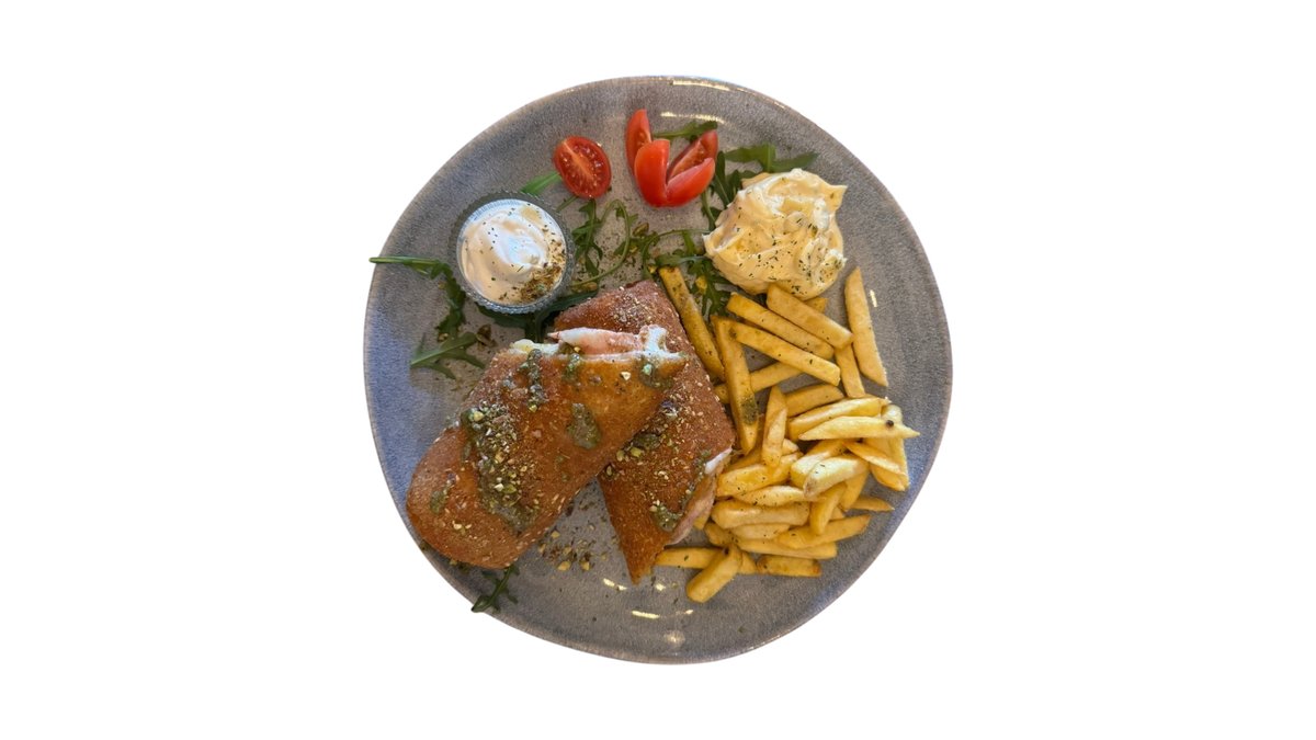Pileći file, kajmak, tartar sos, pomfrit