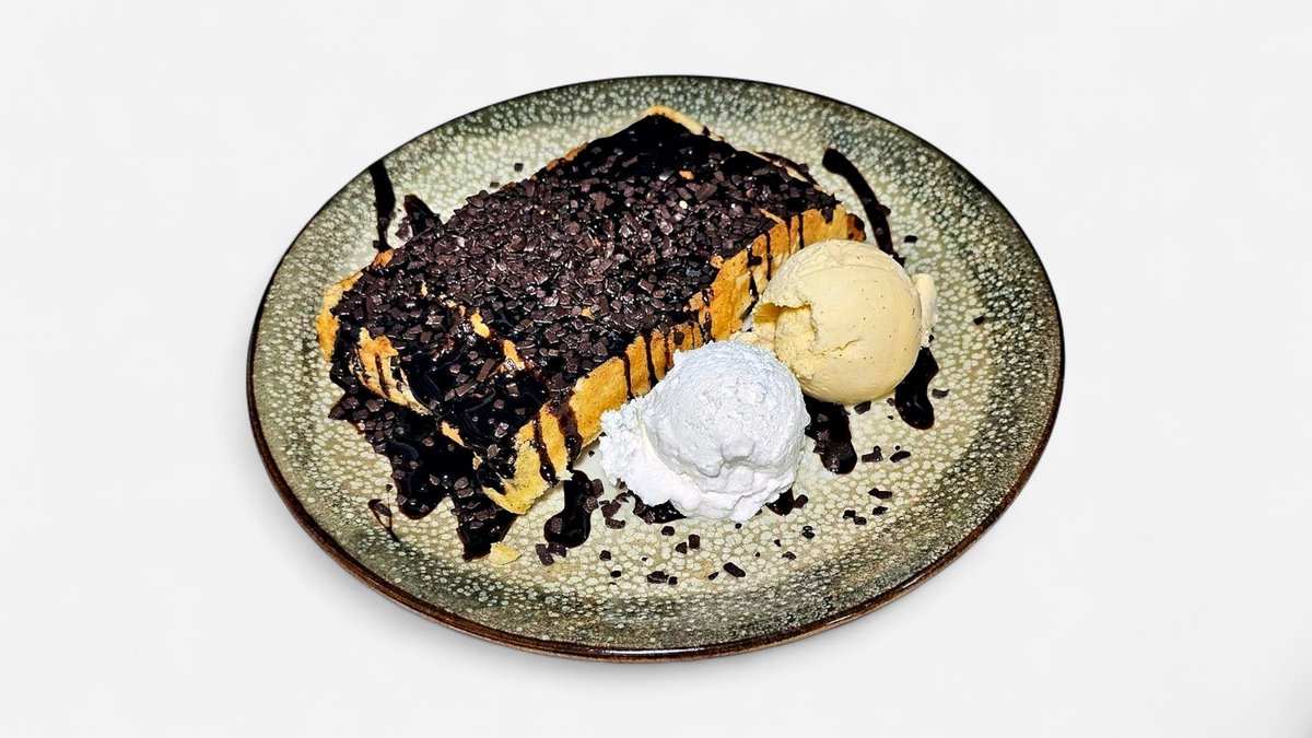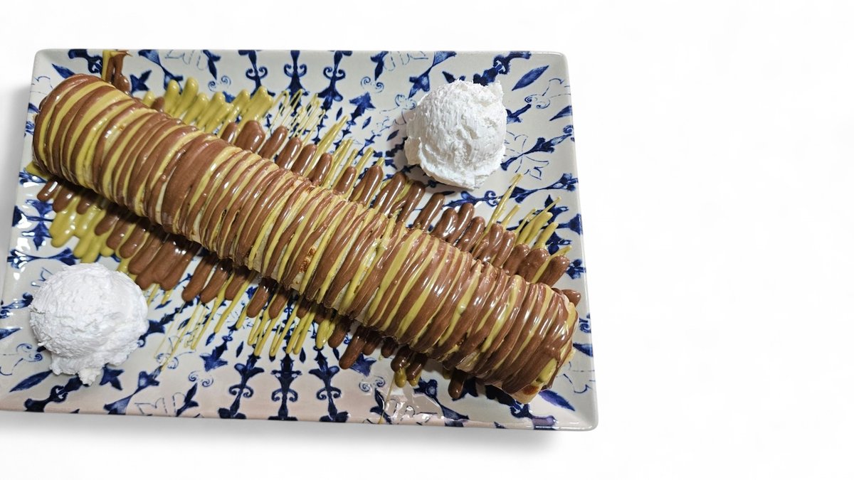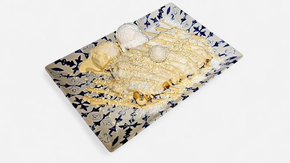Kinder bueno krem, čoko mrvice, sladoled. obična palačinka američka palačinka