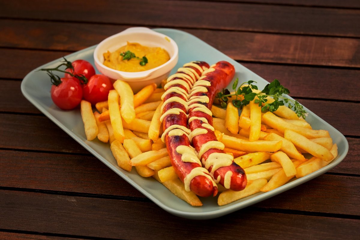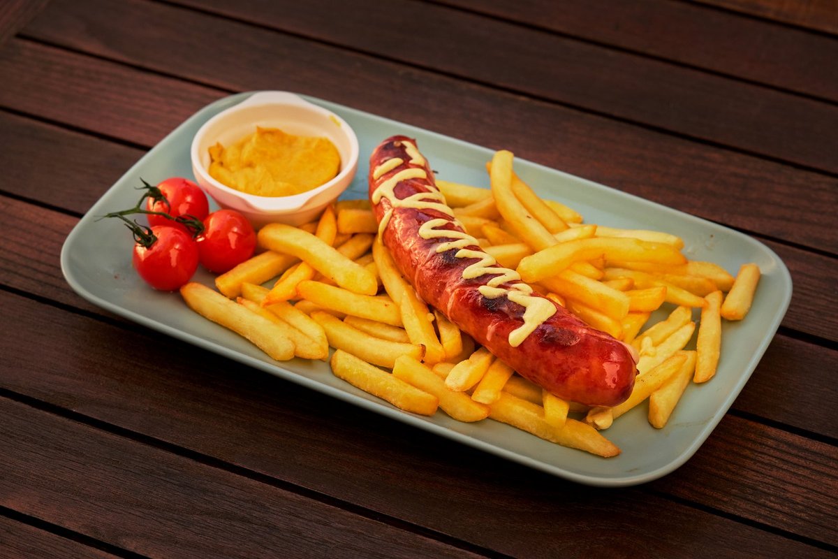 Kobasica sa kačkavaljem + pomfrIt+senf