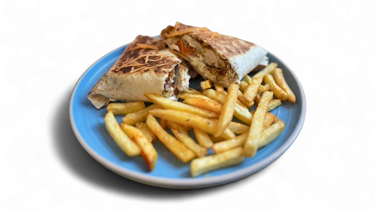 Pilece belo meso,pavlaka,kackavalj,majonez,kecap,paradajz,kupus ,kiseli krastavcici i pomfrit