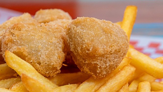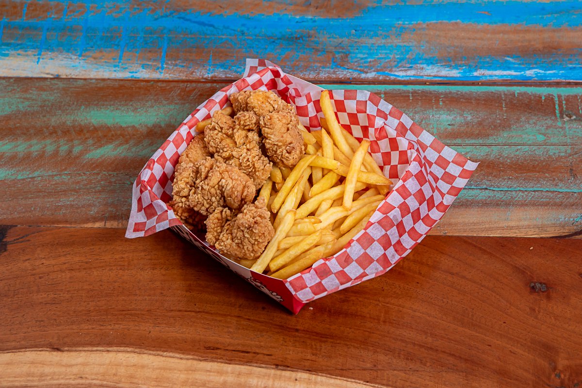 Panirani pileći file u komadima (7 kom) i pomfrit