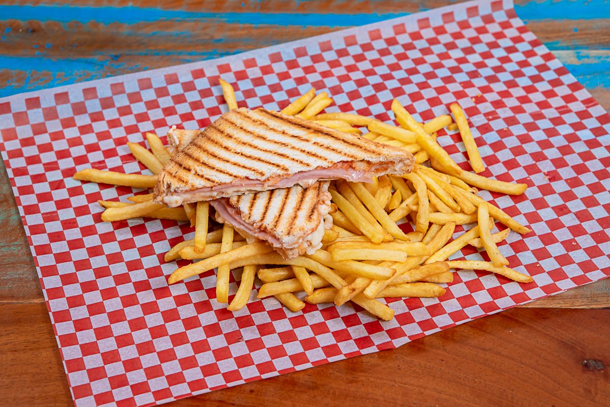 Tortilja,tuna u komadima, iceberg salata, crveni luk, posni majonez, krastavčići, pomfrit