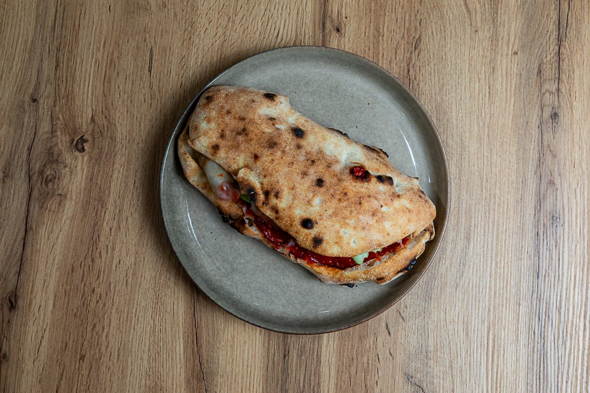 testo, paradajz pelat, mocarela, kulen, panceta, crveni luk, ljuta paprika