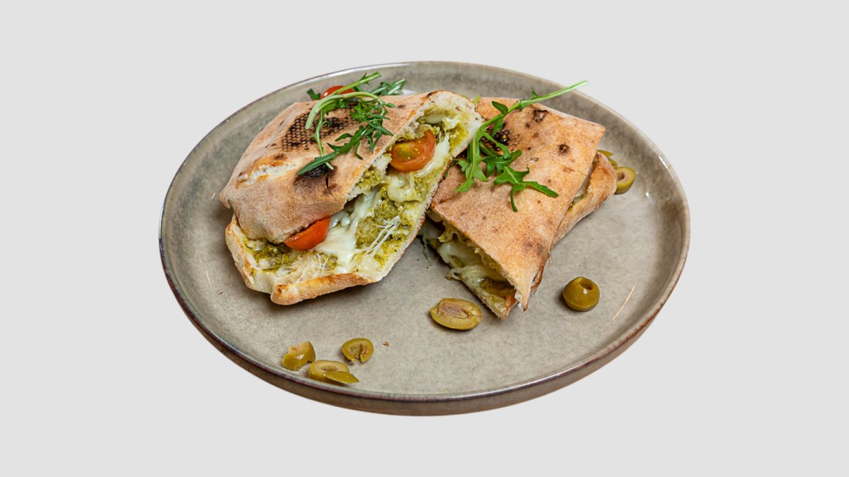 testo, mocarela, pesto od bosiljka, čeri paradajz