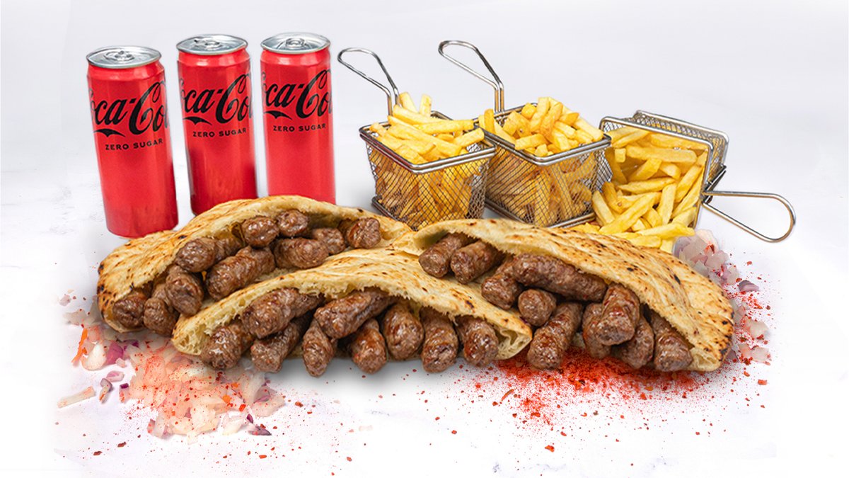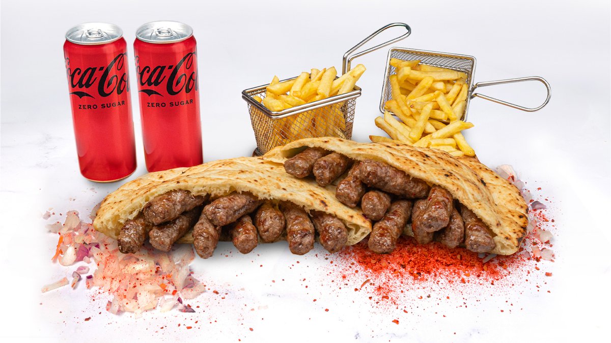 2x Tradicionalni ćevapi od čistog junećeg mesa 250g, somun, pomfrit 200g, Coca-Cola Zero 0.33l