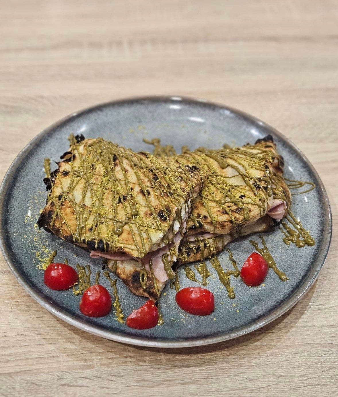 mortadela, pistać, pasta od pistaća, mozzarella, burrata