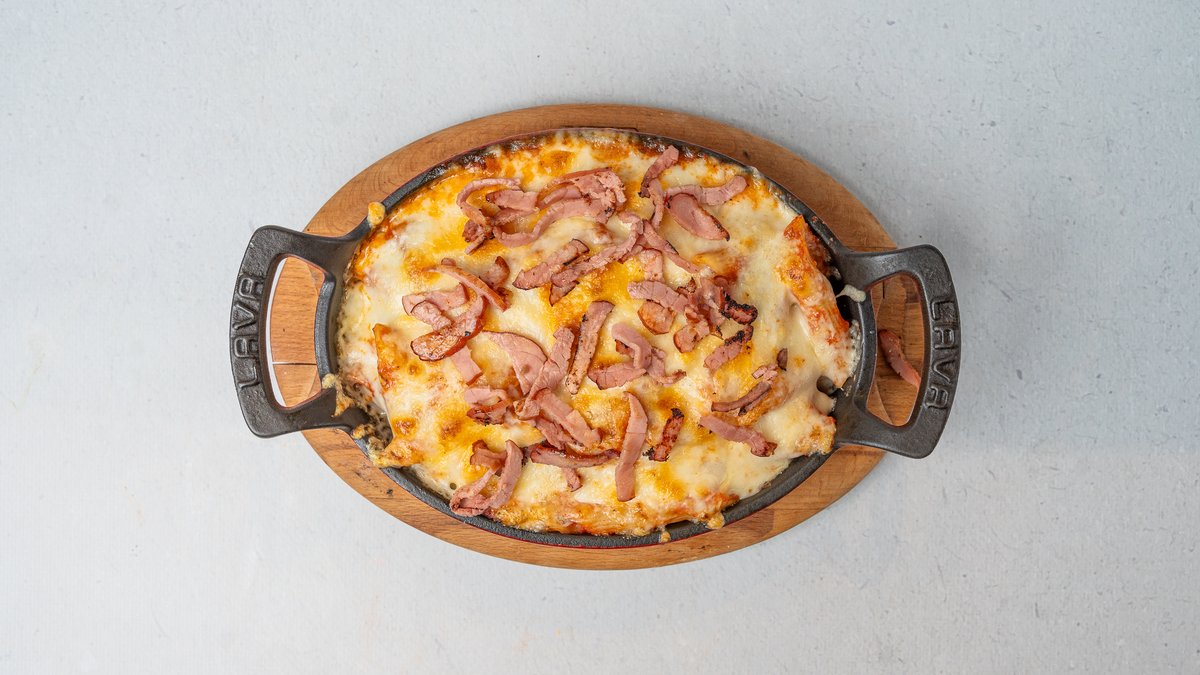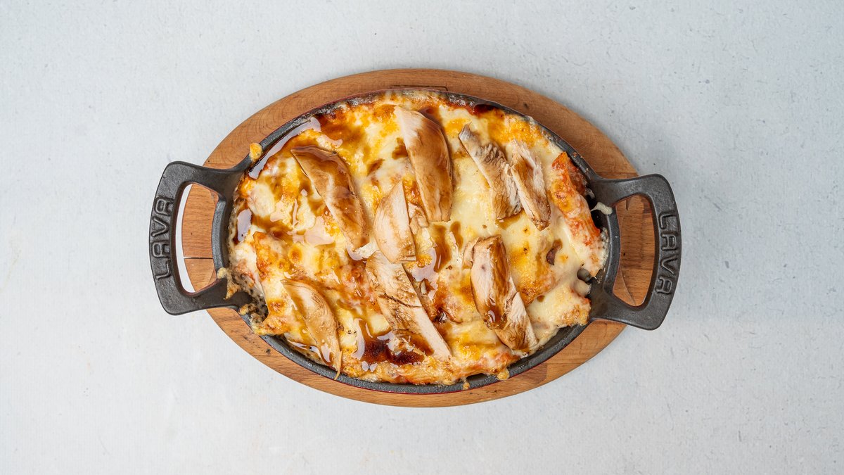 Domate, tranguj, mish viçi, proshutë, parmigiano, salcë shtëpie