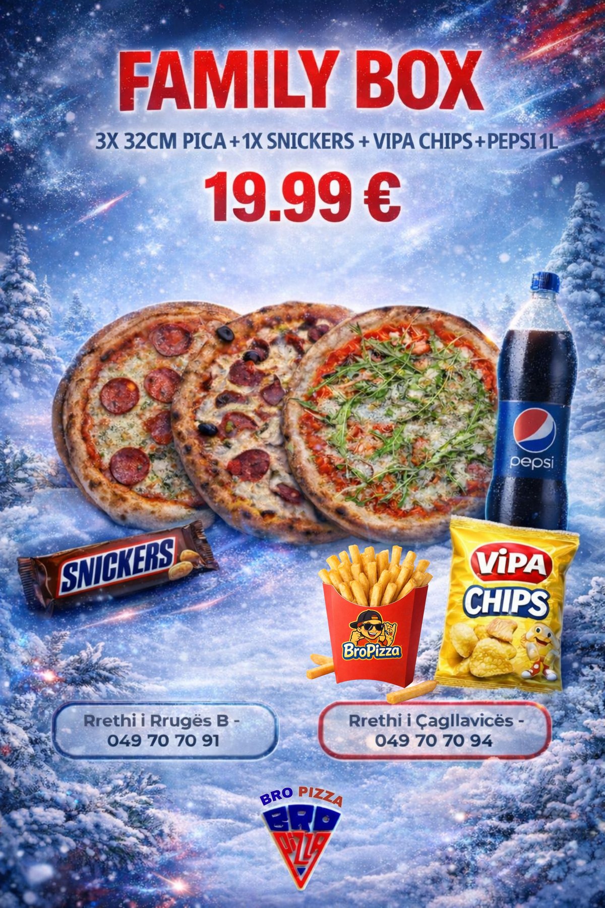 3X 32cm Pica + 1 Snickers + Vipa Chips + Pepsi 1L