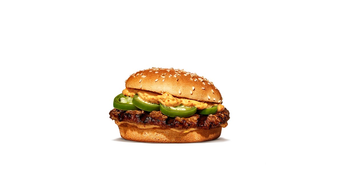 Chilli cheese sauce, jalapeno peppers, burger patty