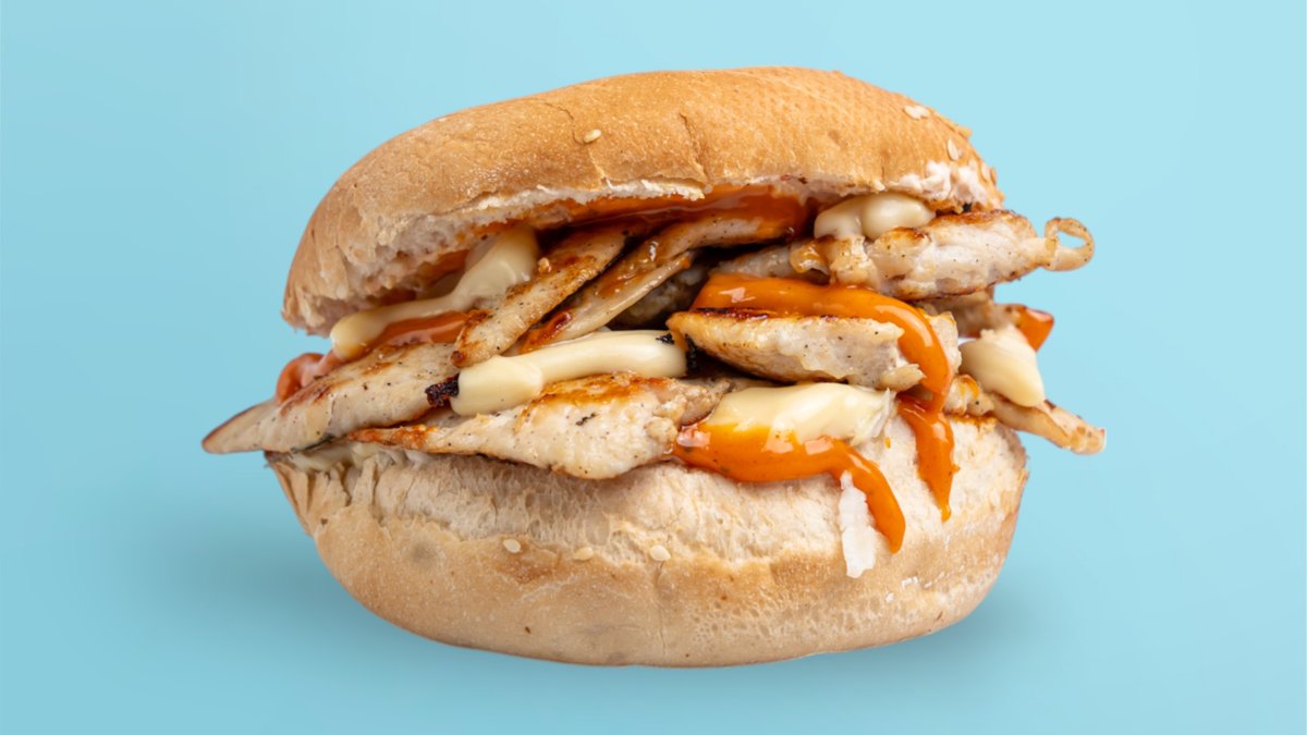 File pule, lakër, domate, qepë, sos të bardhë me përbajtje gjizes, sos të djegst sos me aromë të hudrës, keçap, majonezë